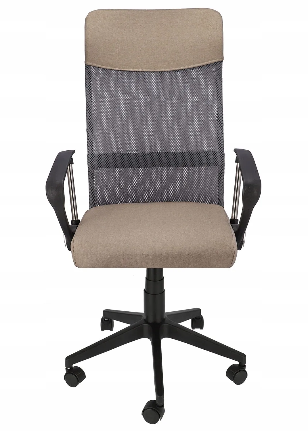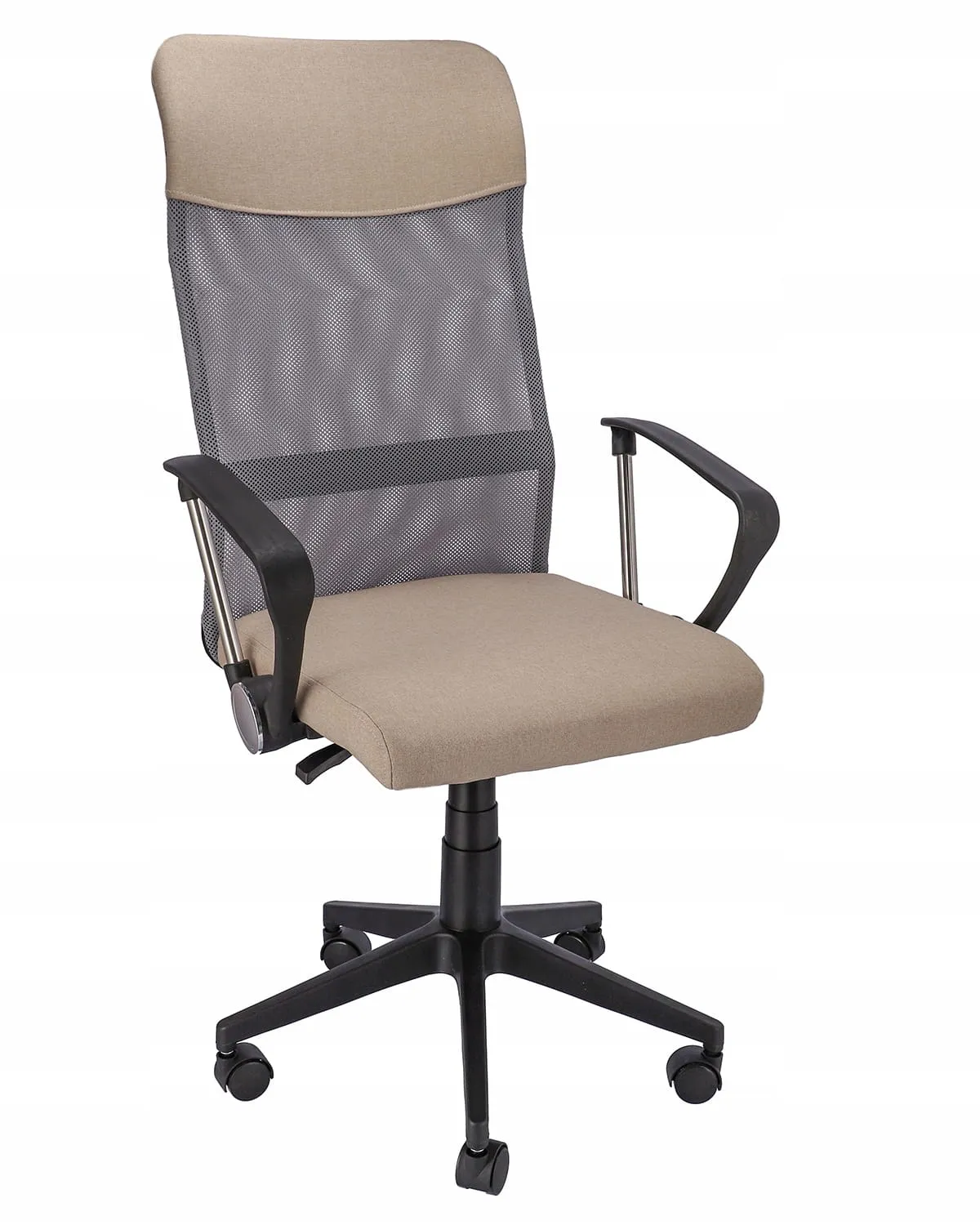 Wysokie, wyprofilowane oparcie z ergonomicznej siatki w połączeniu z eleganckim materiałem wygląda bardzo szykownie, a miękkie siedzisko zapewnia dużą wygodę. Pięcioramienna podstawa zakończona niewielkimi plastikowymi kółkami daje dużą stabilność, a siłownik pozwala dostosować wysokość siedzenia do wymaganych potrzeb.