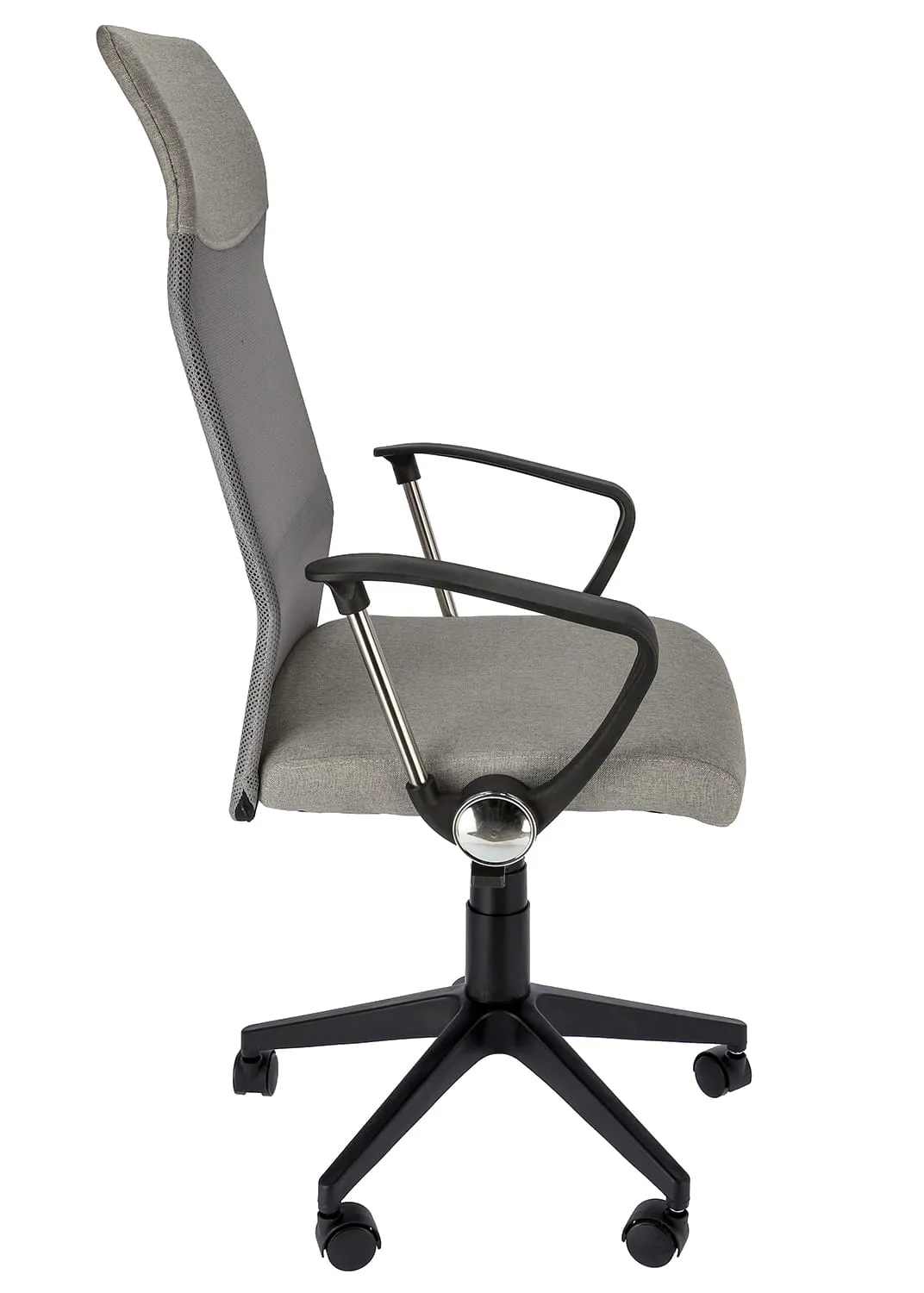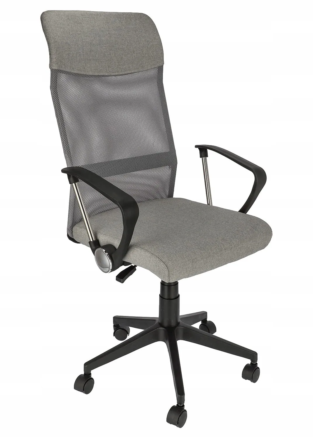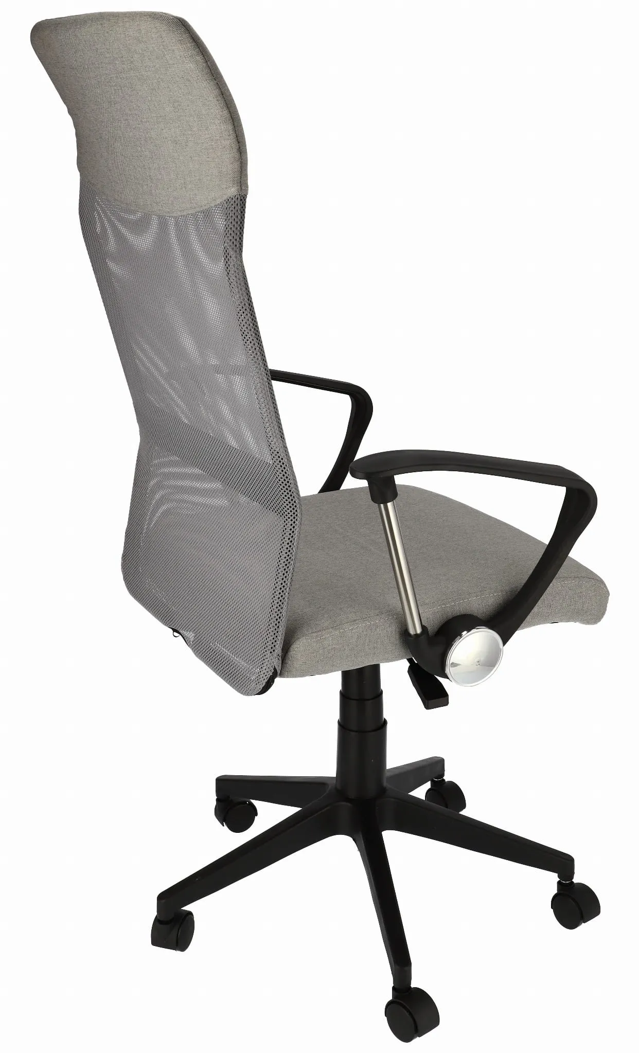 Wysokie, wyprofilowane oparcie z ergonomicznej siatki w połączeniu z eleganckim materiałem wygląda bardzo szykownie, a miękkie siedzisko zapewnia dużą wygodę. Pięcioramienna podstawa zakończona niewielkimi plastikowymi kółkami daje dużą stabilność, a siłownik pozwala dostosować wysokość siedzenia do wymaganych potrzeb.