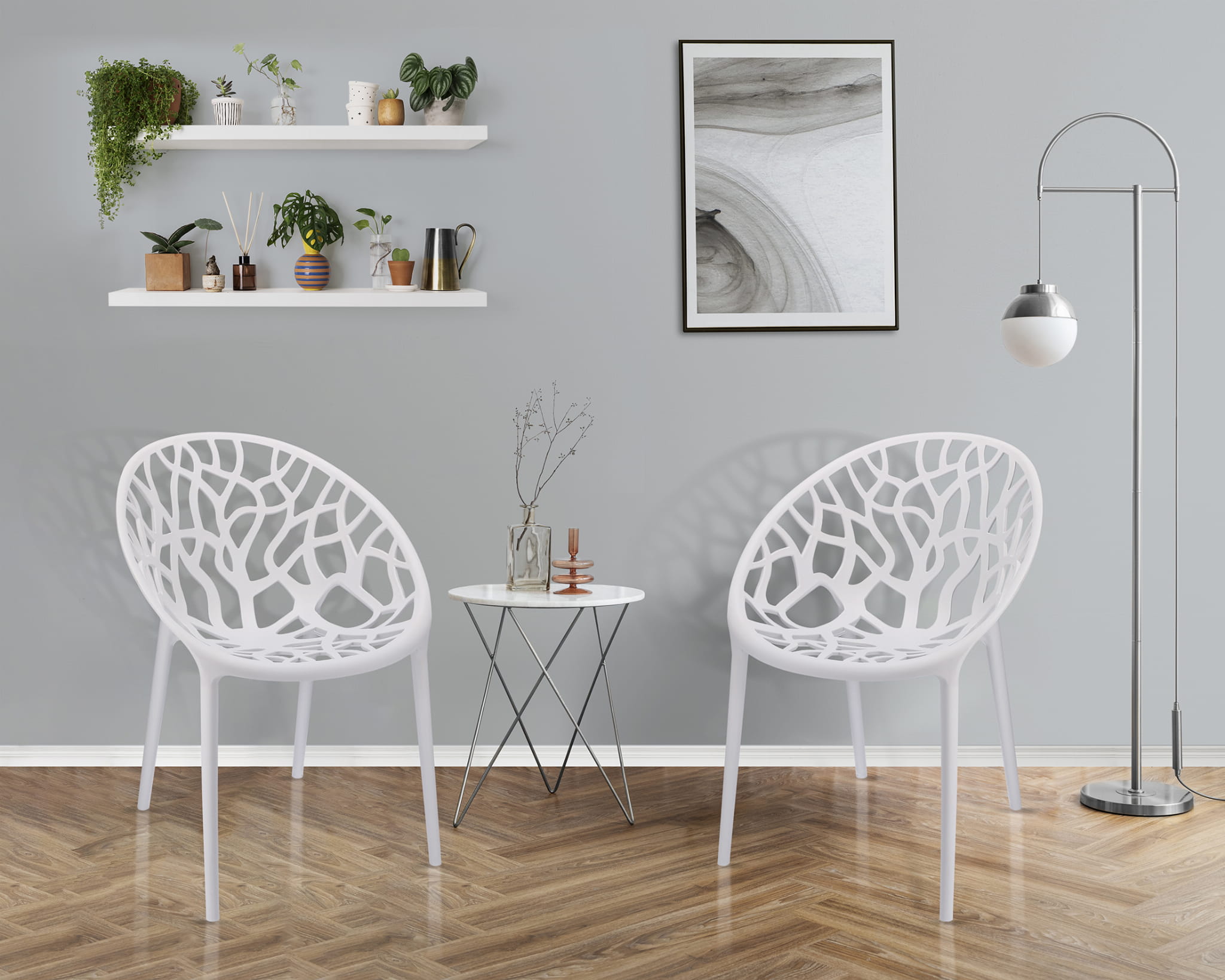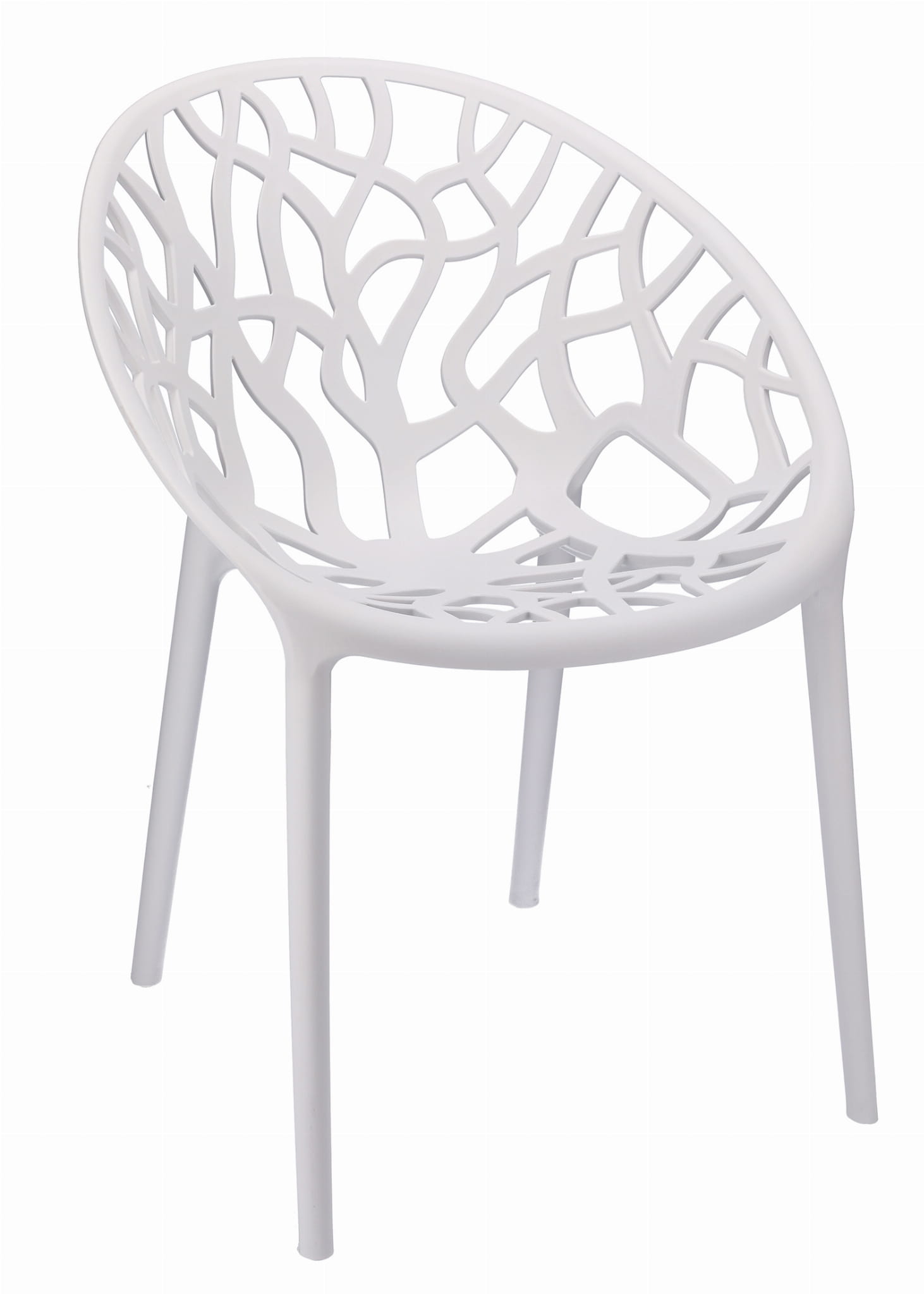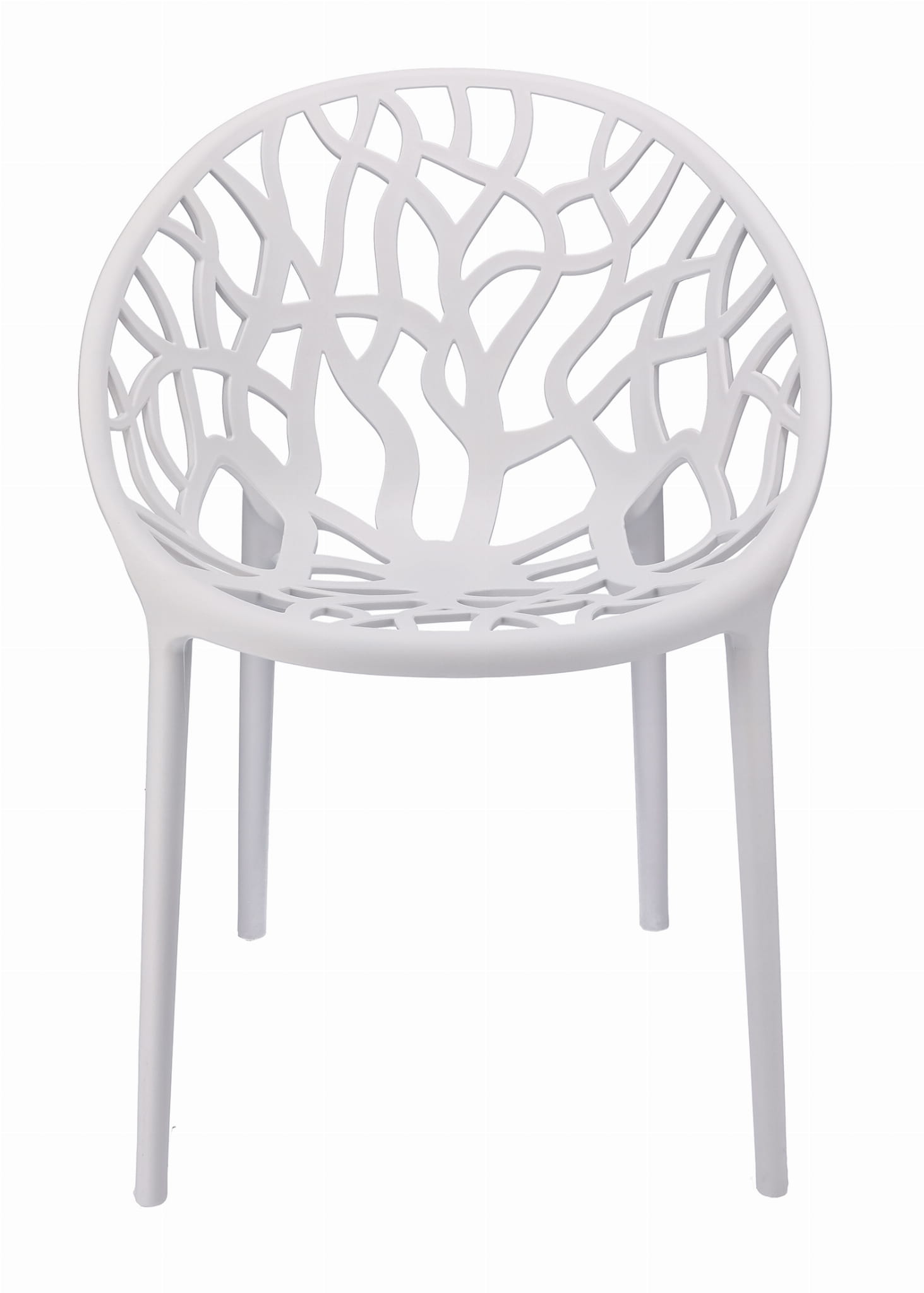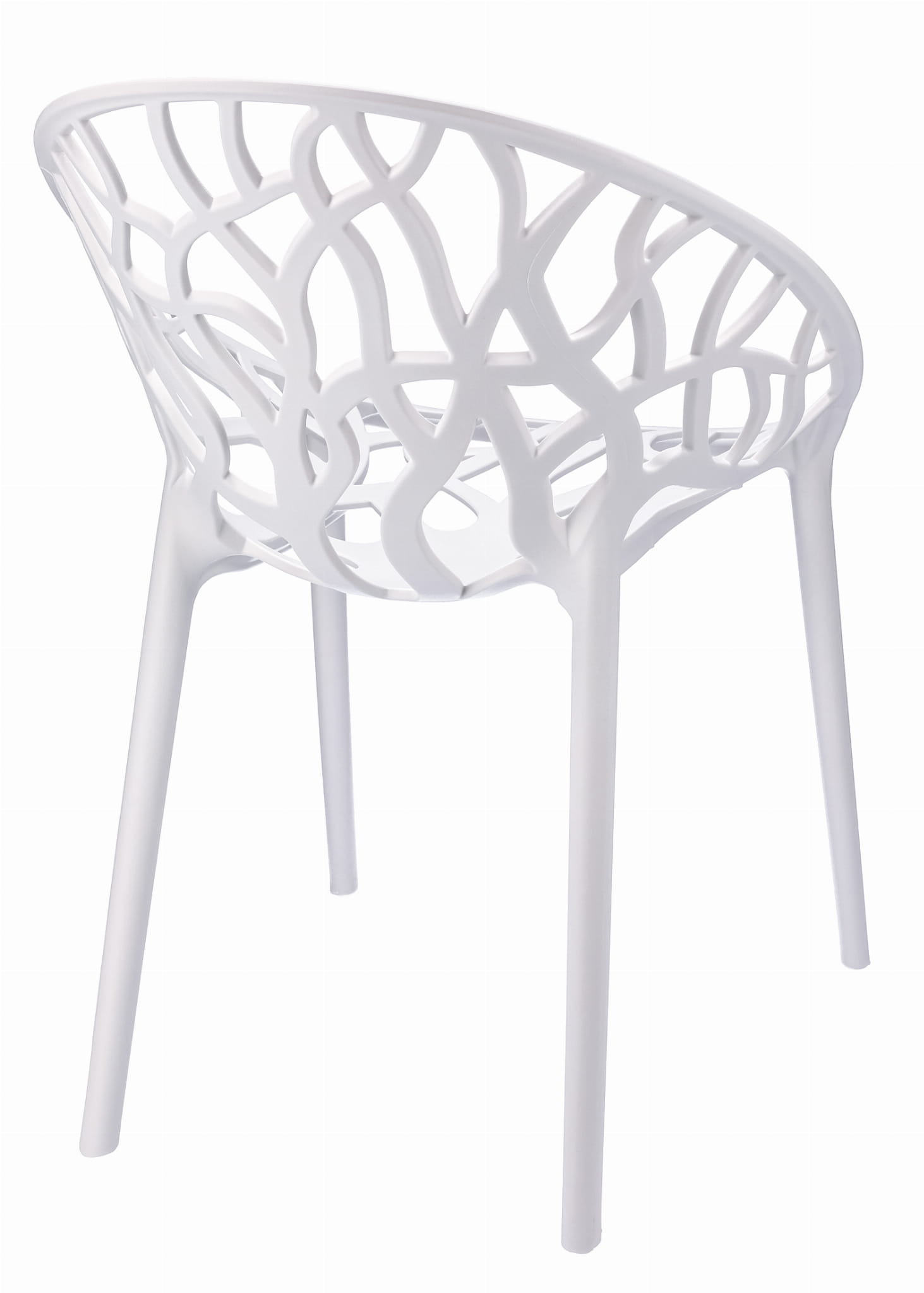 Obłe siedzisko wykonane z polipropylenu ze wzorem rozgałęzionego drzewa zapewnia wygodę oraz stylowy dodatek do wnętrza. Grube, masywne nogi pasują do całości i zapewniają idealną stabilność.