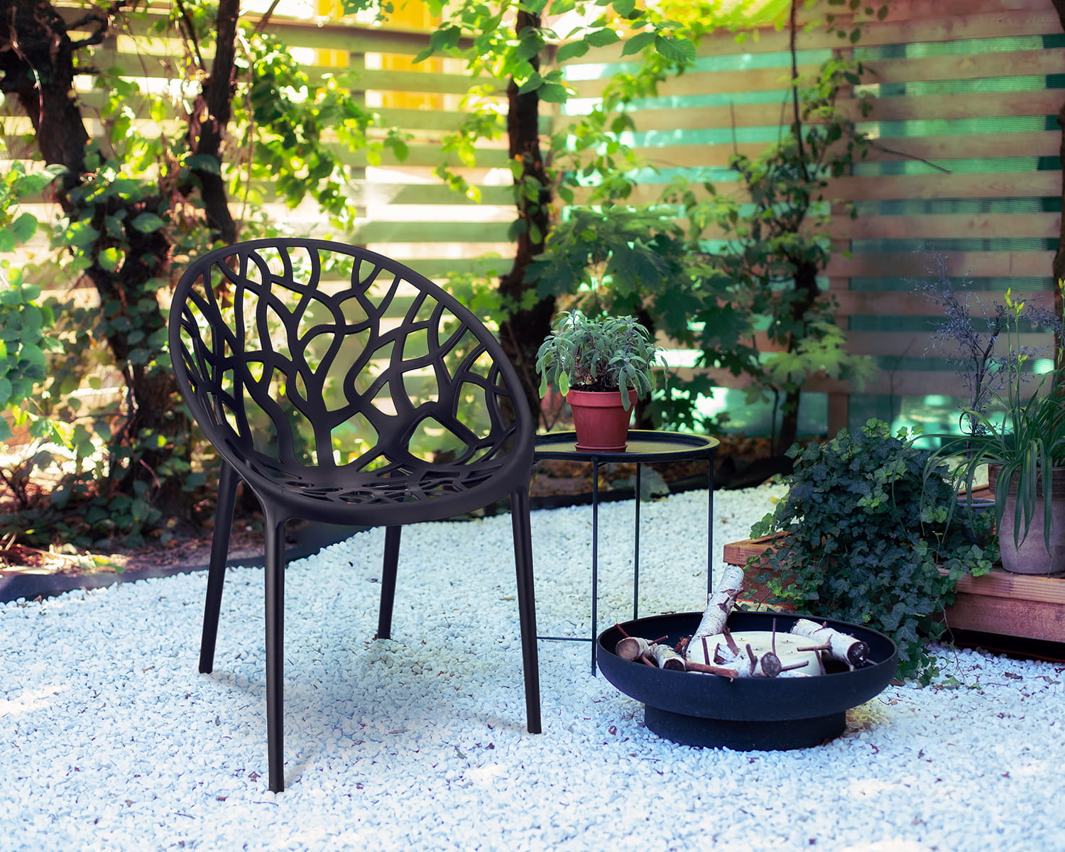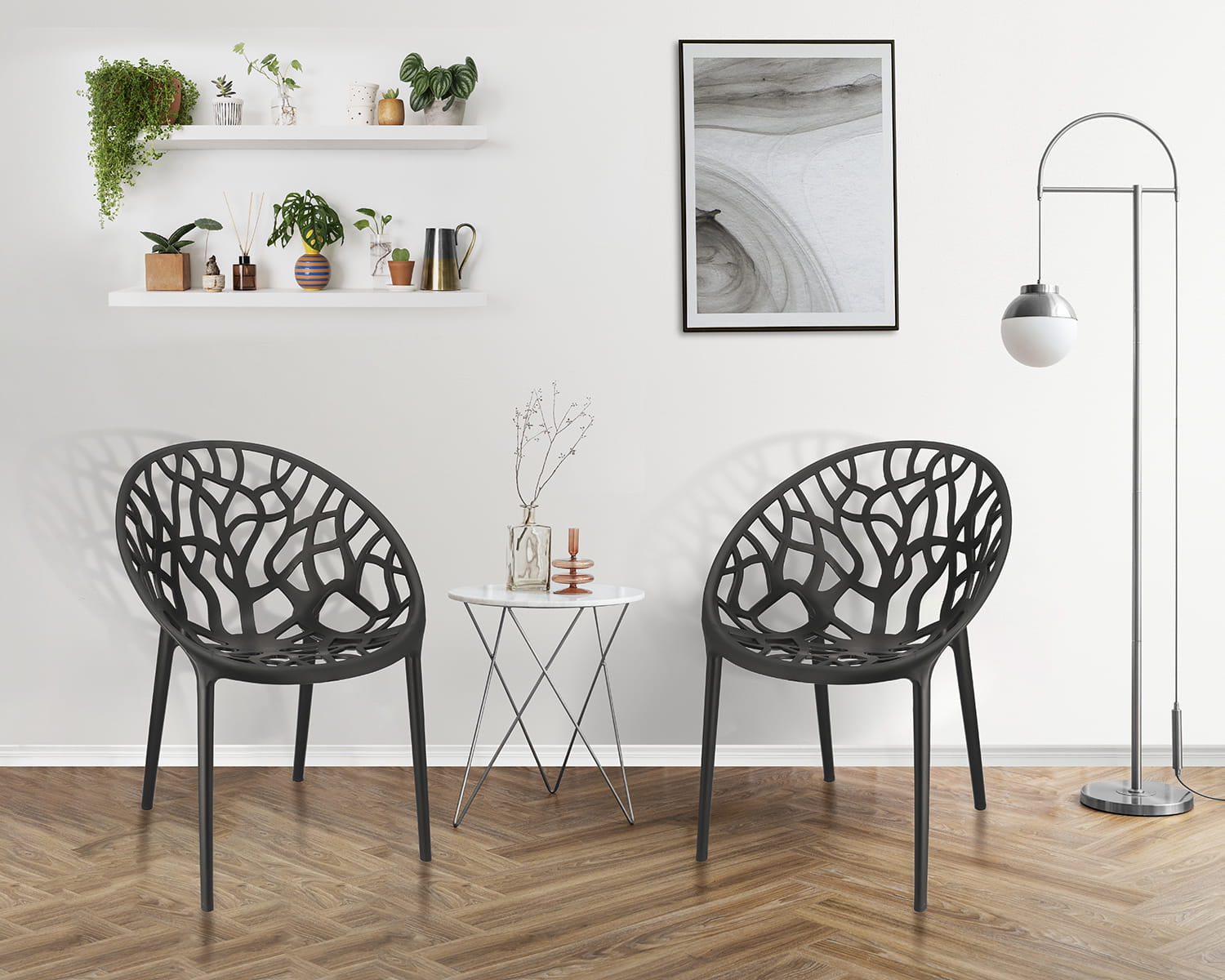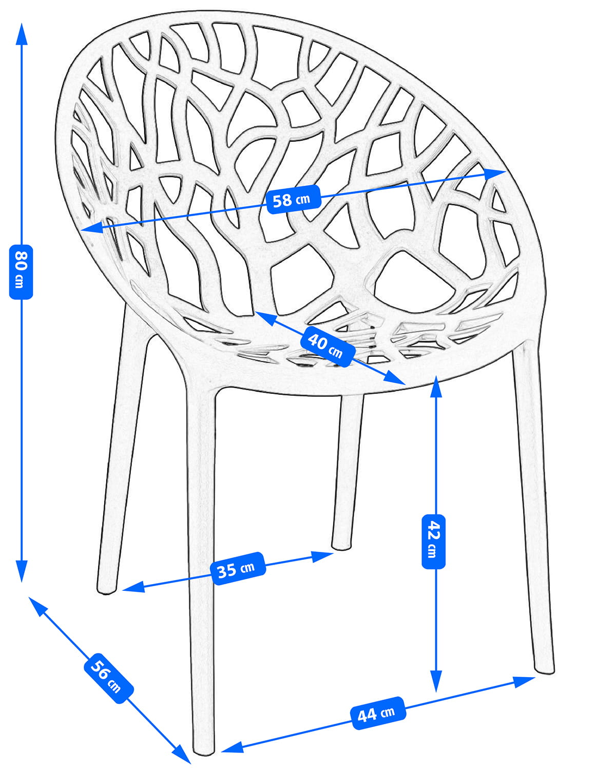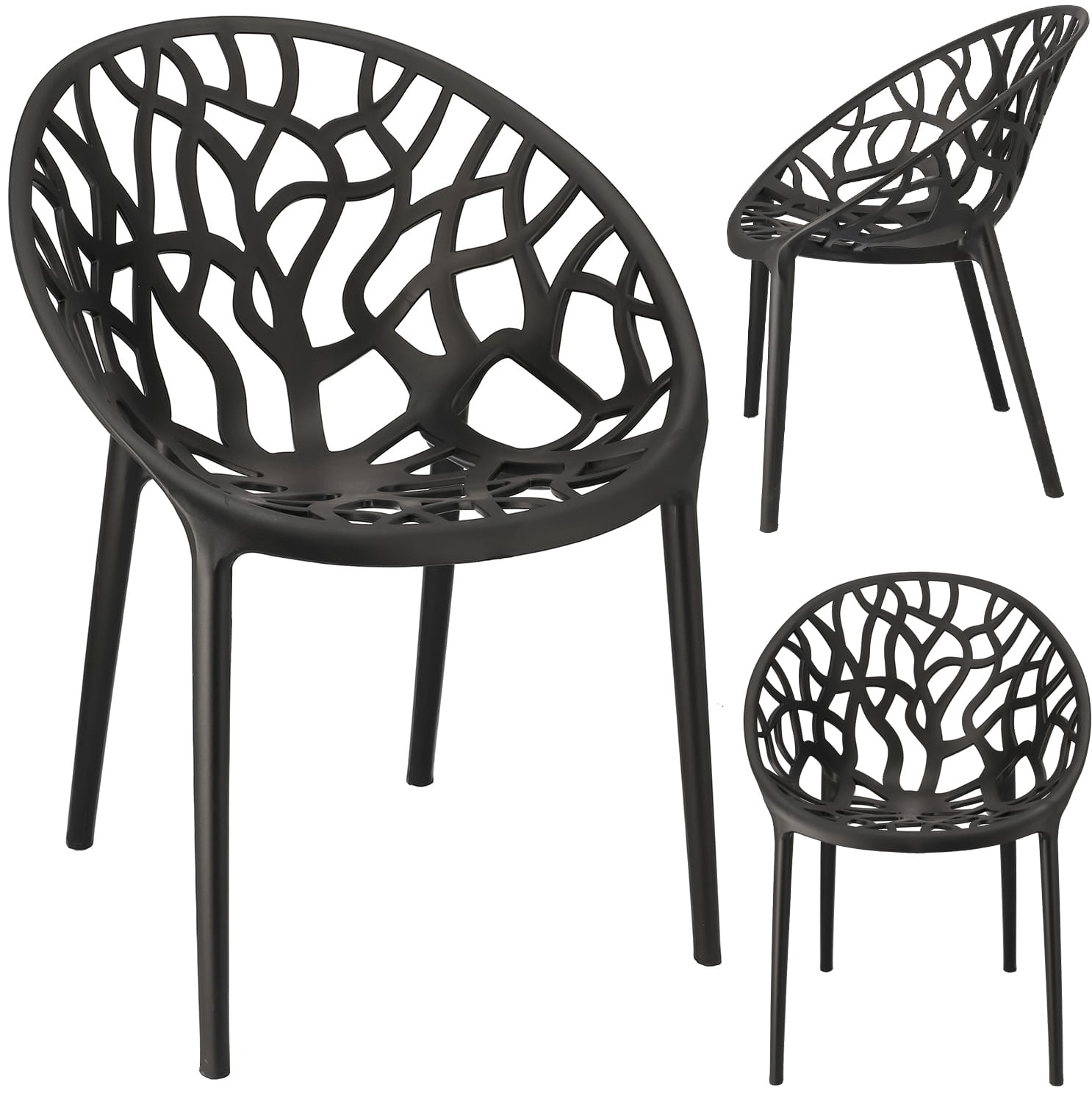 Obłe siedzisko wykonane z polipropylenu ze wzorem rozgałęzionego drzewa zapewnia wygodę oraz stylowy dodatek do wnętrza. Grube, masywne nogi pasują do całości i zapewniają idealną stabilność.
