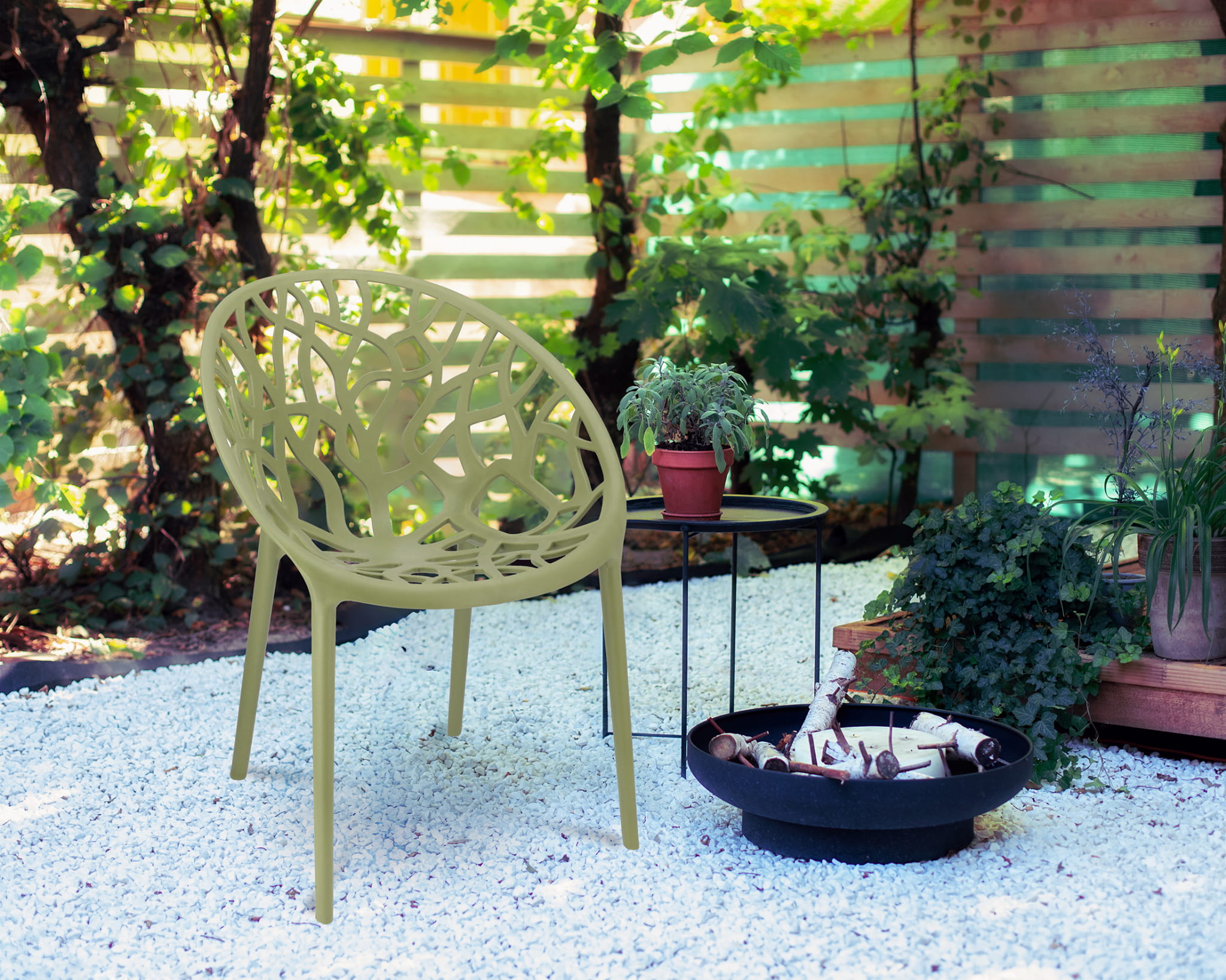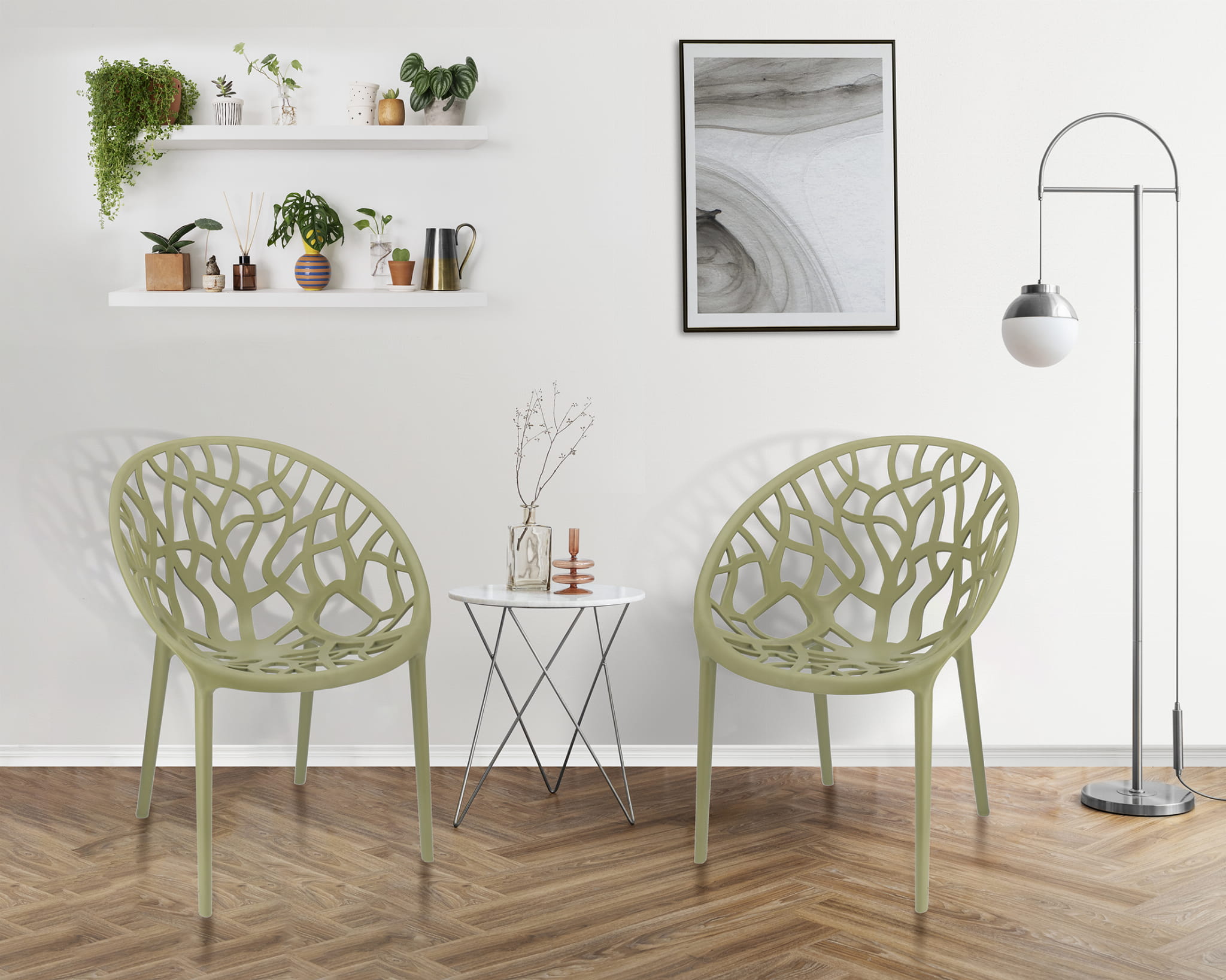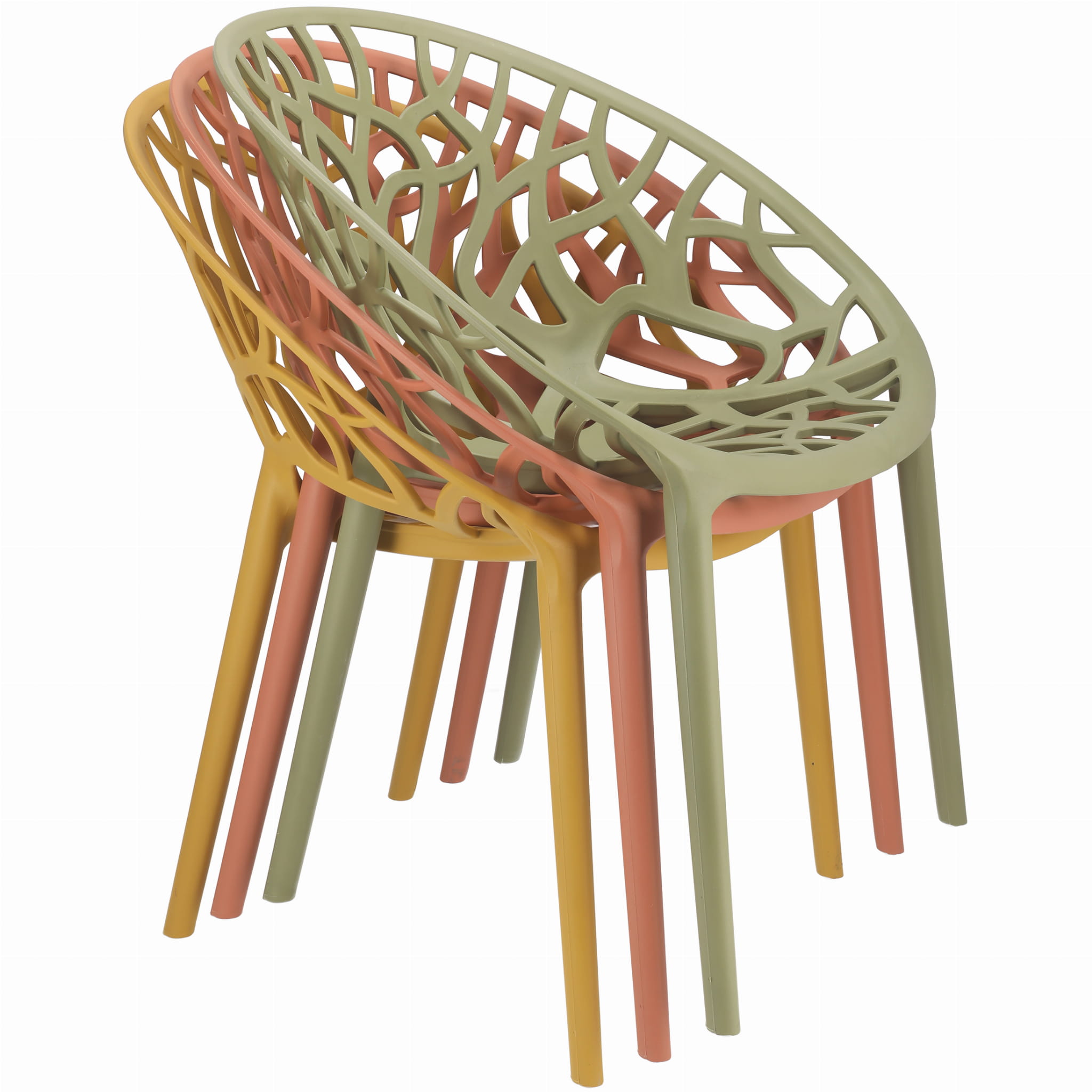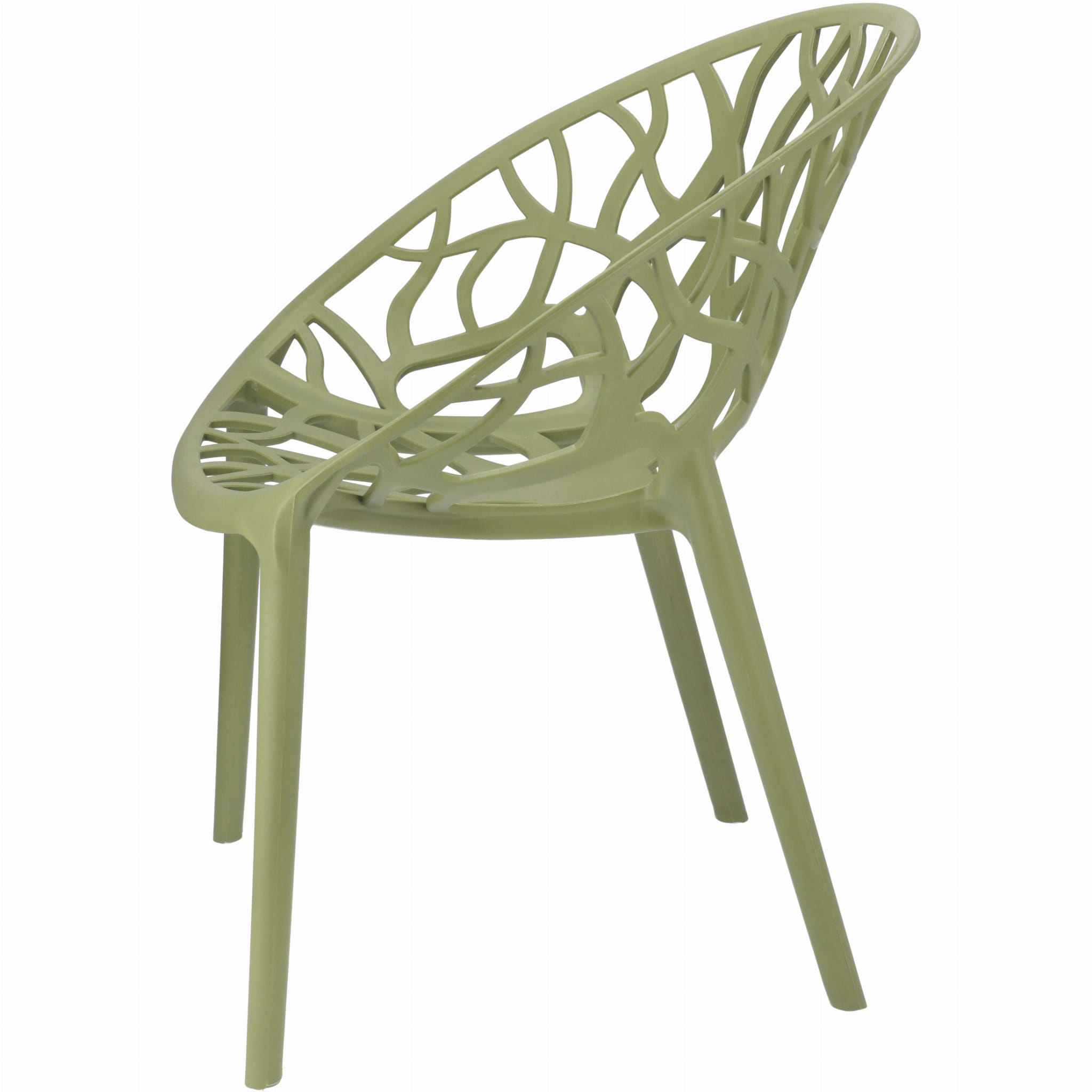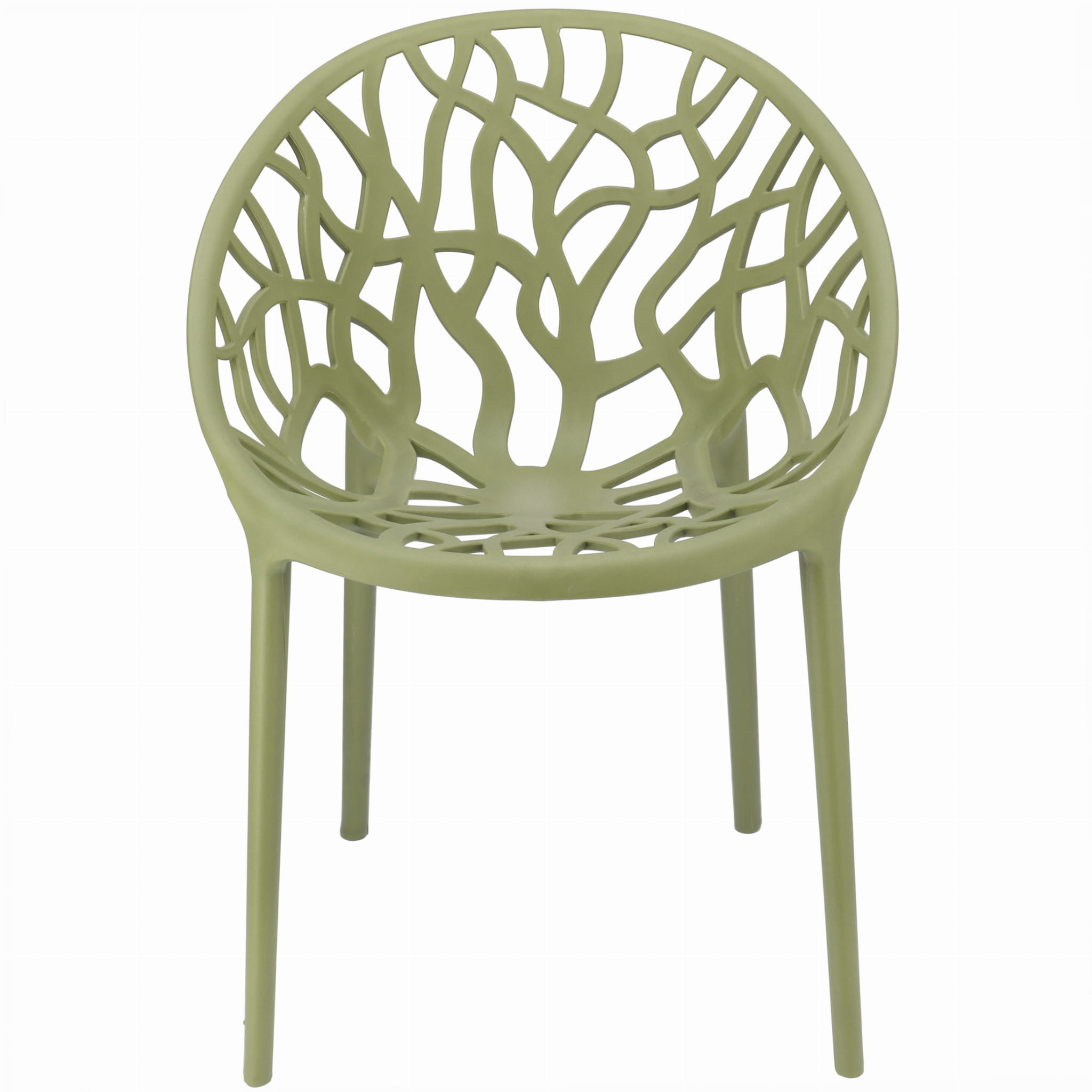 Obłe siedzisko wykonane z polipropylenu ze wzorem rozgałęzionego drzewa zapewnia wygodę oraz stylowy dodatek do wnętrza. Grube, masywne nogi pasują do całości i zapewniają idealną stabilność.