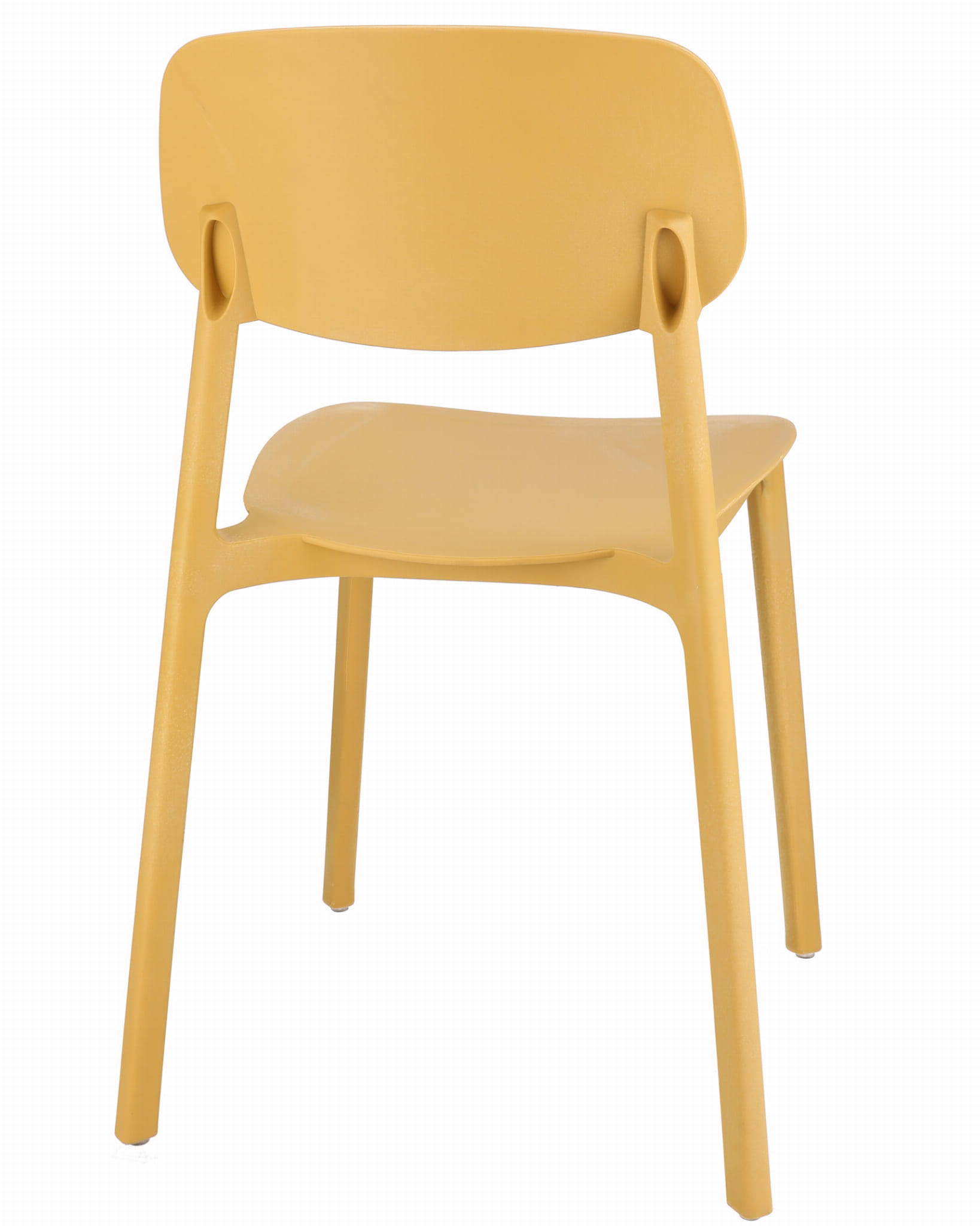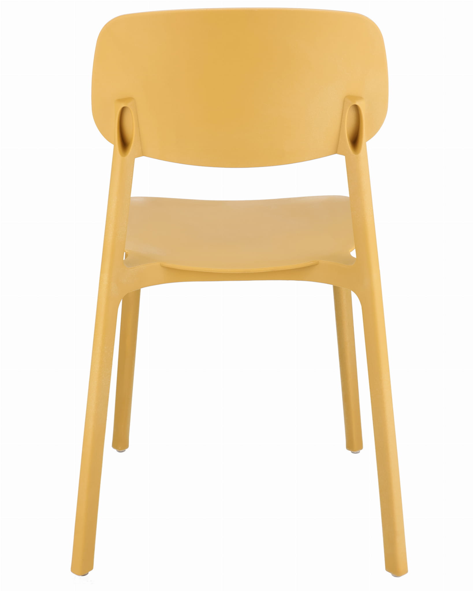 Owalne oparcie jak i całe krzesło wykonane jest z polipropylenu co zapewnia mu długotrwałą wytrzymałość, a proste nogi zapewniają idealną stabilność.