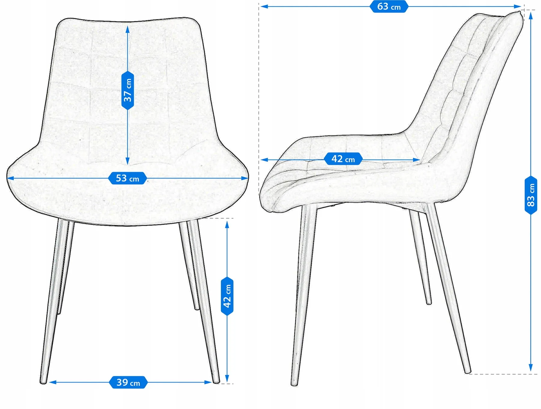 Aksamitna tapicerka uszyta z welurowej tkaniny wygląda niezwykle delikatnie, a wysokie i smukłe nóżki w czarnym kolorze wyglądają bardzo szykownie oraz gwarantują idealną stabilność.