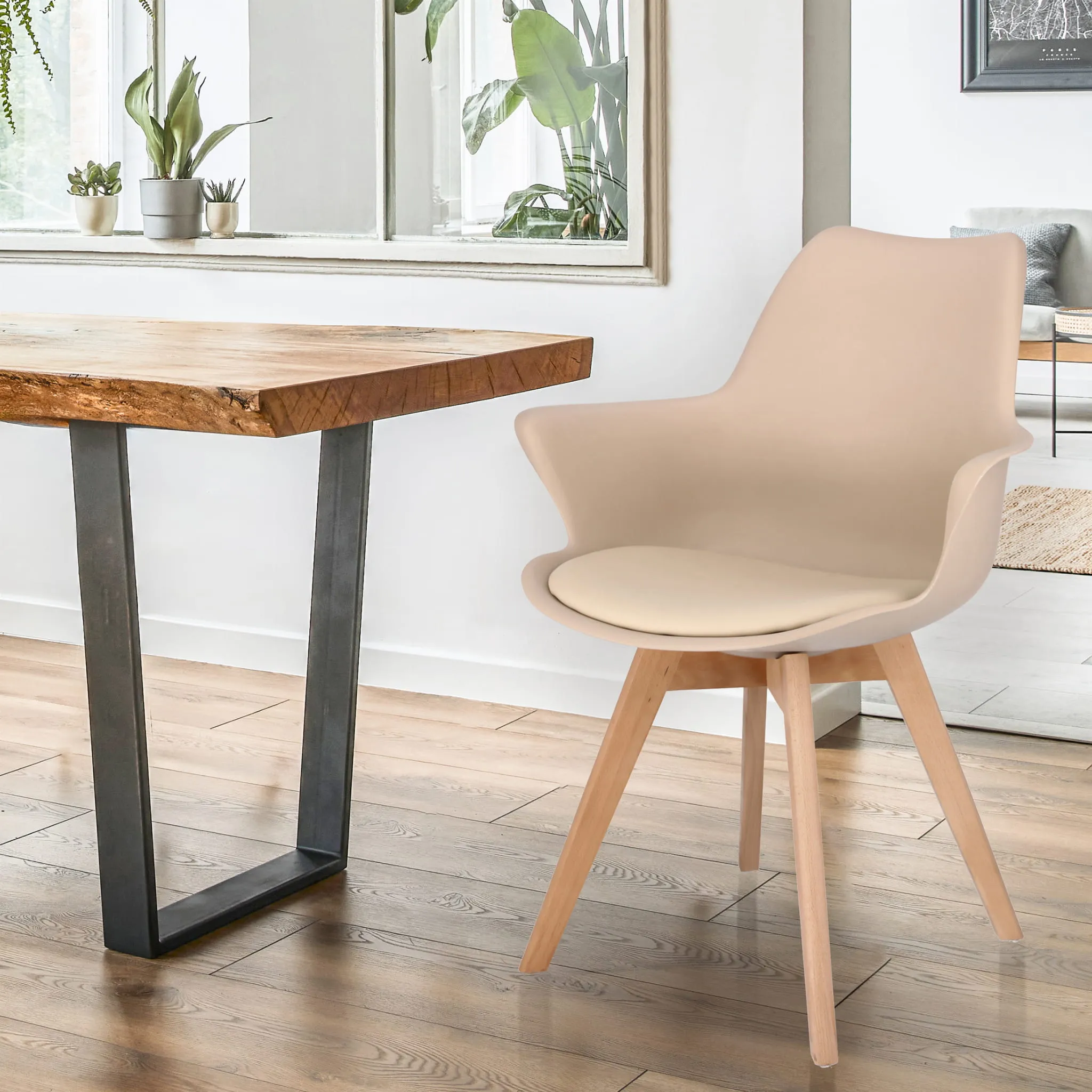 Krzesło ORLEAN skandynawskie plastikowe ekoskóra beżowe