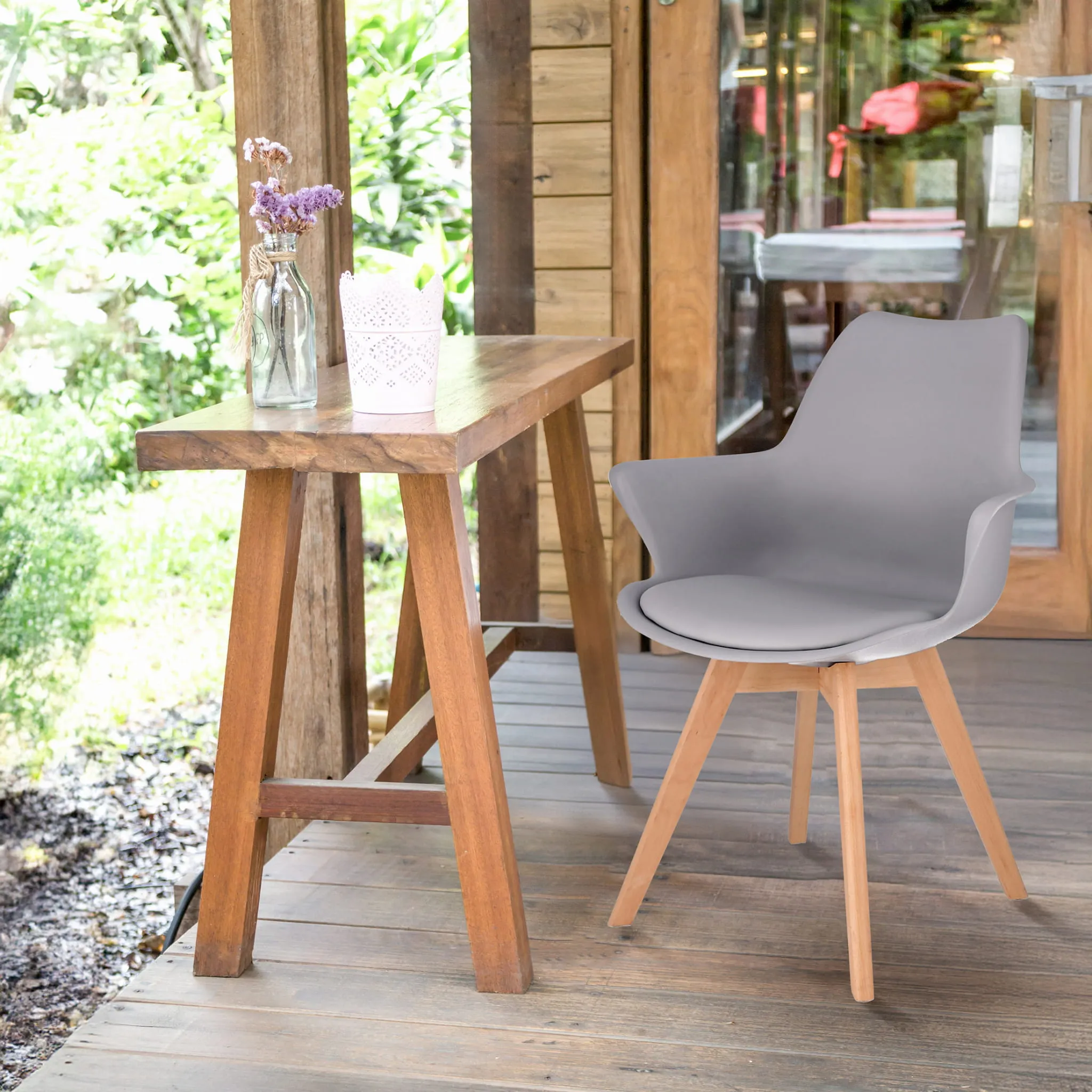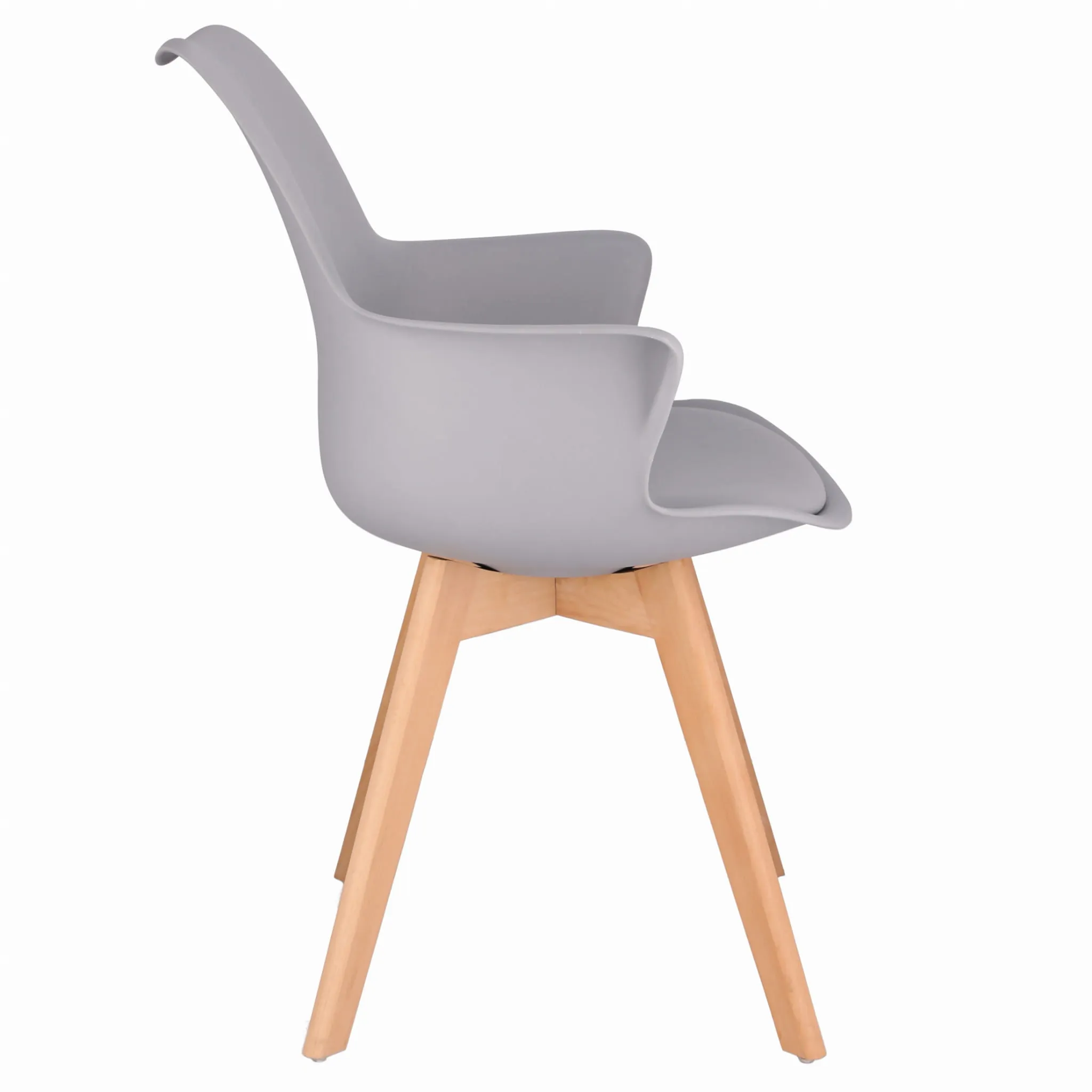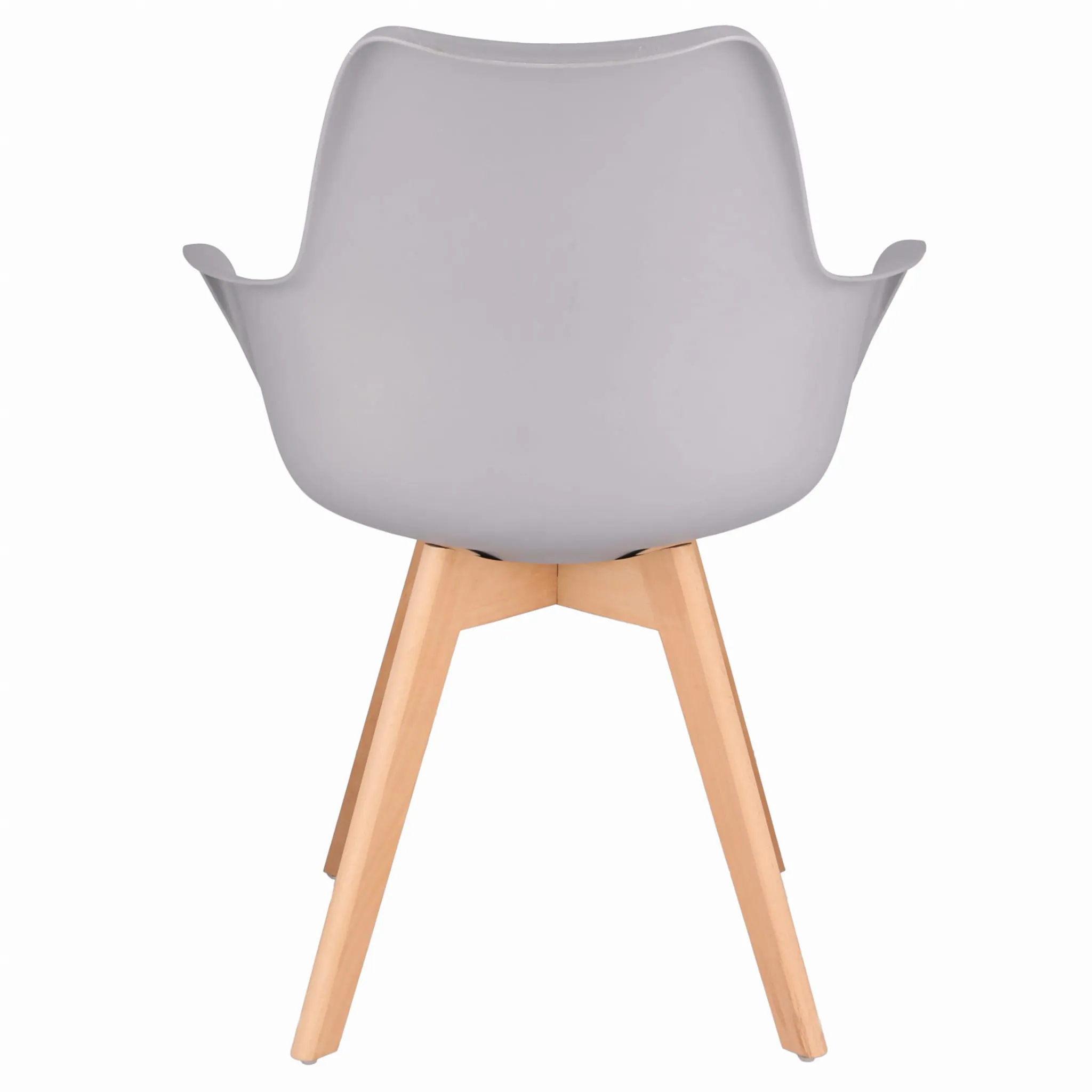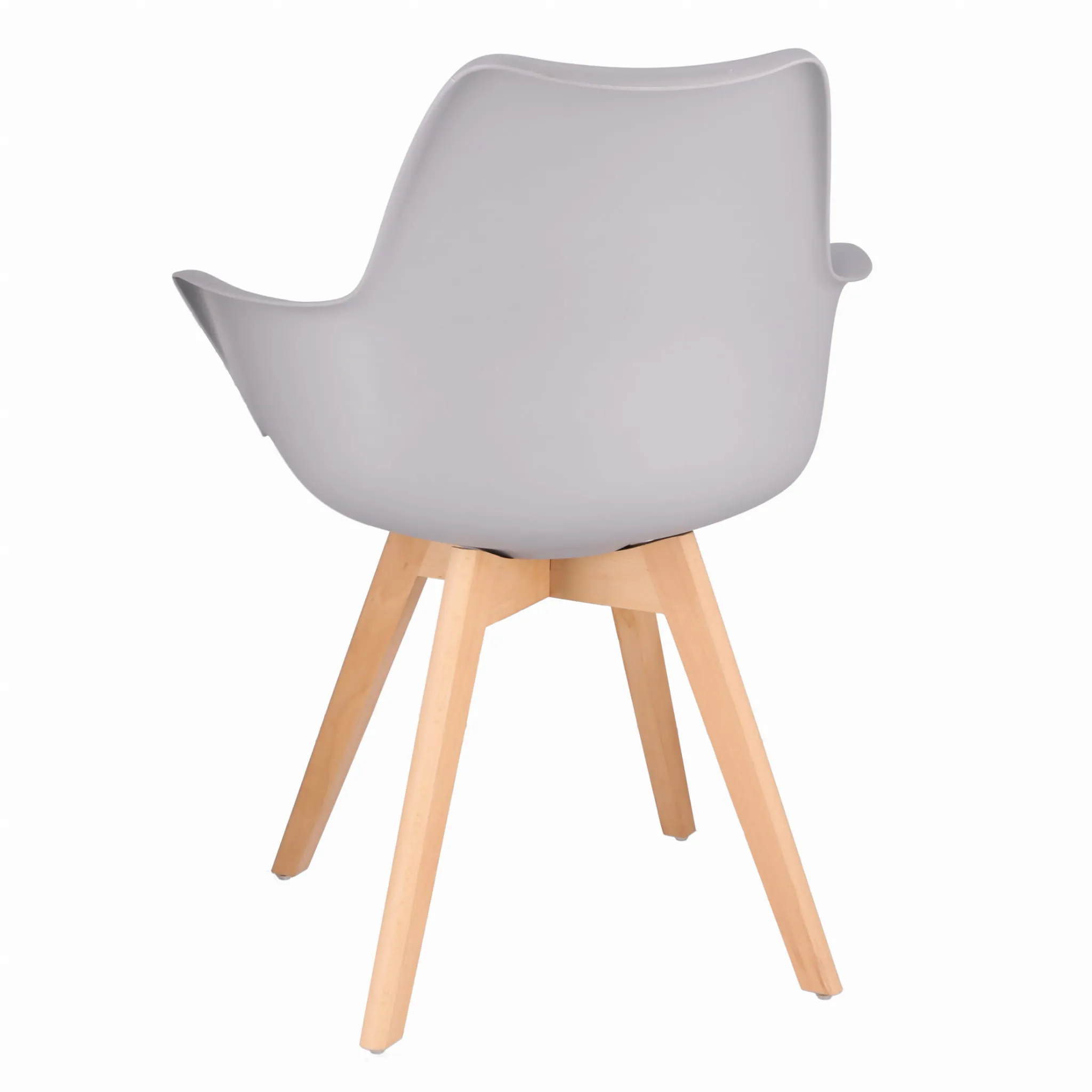 Posiada wyprofilowane oparcie, które w połączeniu z miękką poduszką umieszczoną na siedzisku zapewnia dużą wygodę. Wyróżnia się poprzez jego unikatową cechę, wymodelowane podłokietniki pozwalające na wygodne i komfortowe użytkowanie. Drewniane nogi wykonane są z buku, dzięki czemu zapewniają stabilność oraz trwałość użytkowania.