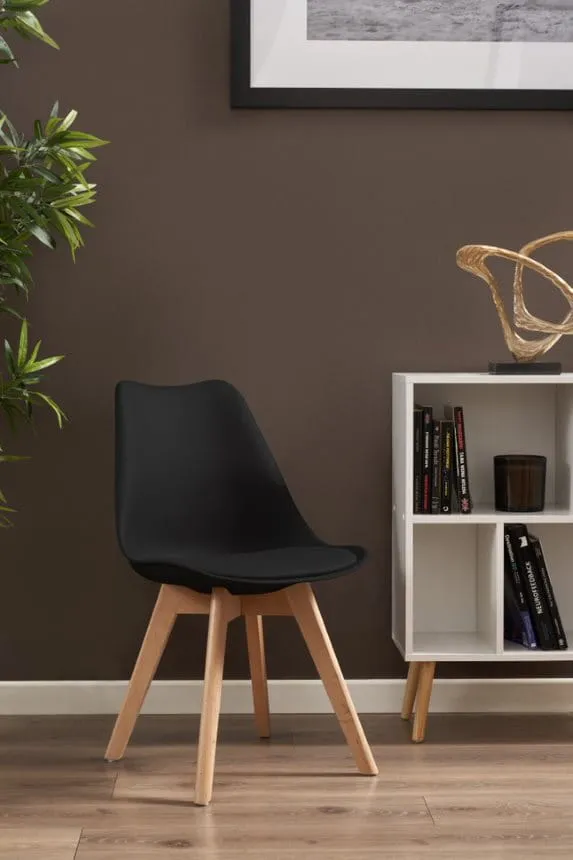 Posiada idealnie wyprofilowane oparcie, które w połączeniu z miękką poduszką umieszczoną na siedzisku zapewnia dużą wygodę. Drewniane nogi wykonane z buku o jego jasnym odcieniu zapewnianą stabilność oraz wytrzymałość. Krzesło jest bardzo praktyczne i funkcjonalne.