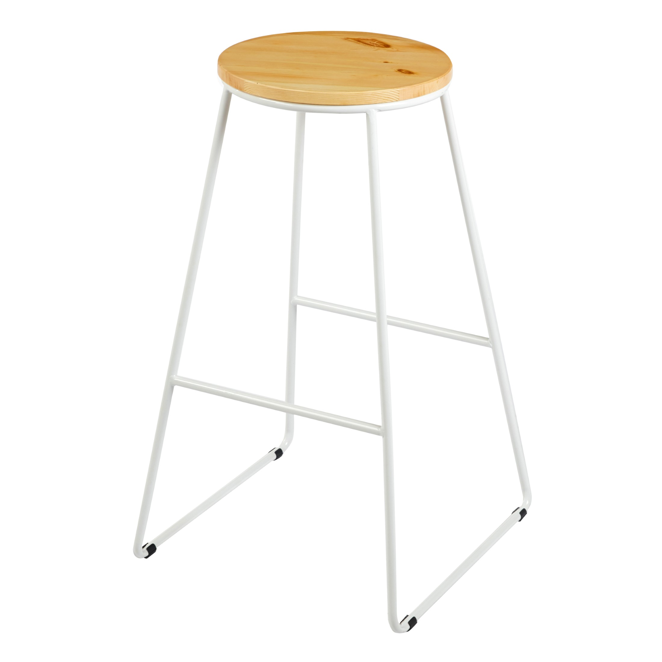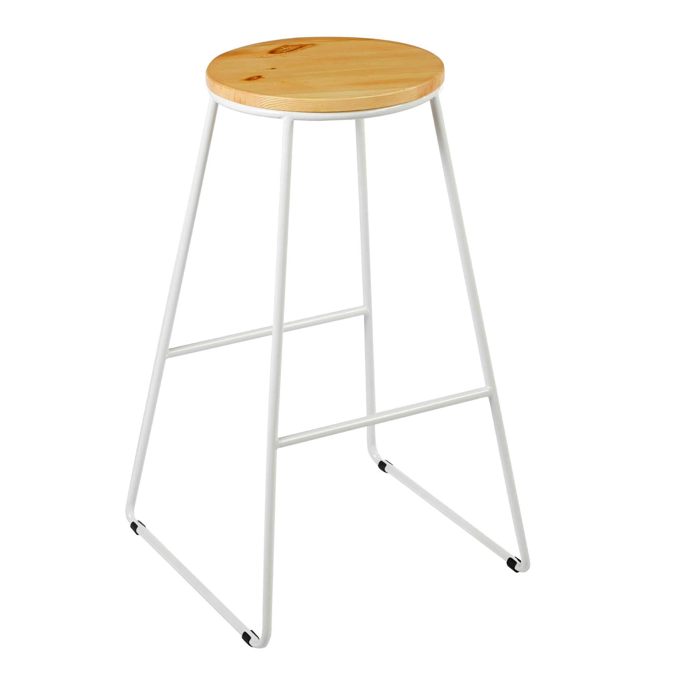 - Okrągłe, drewniane siedzisko nadaje całości ciepła, a biała, stabilna podstawa dodaje lekkości i elegancji.