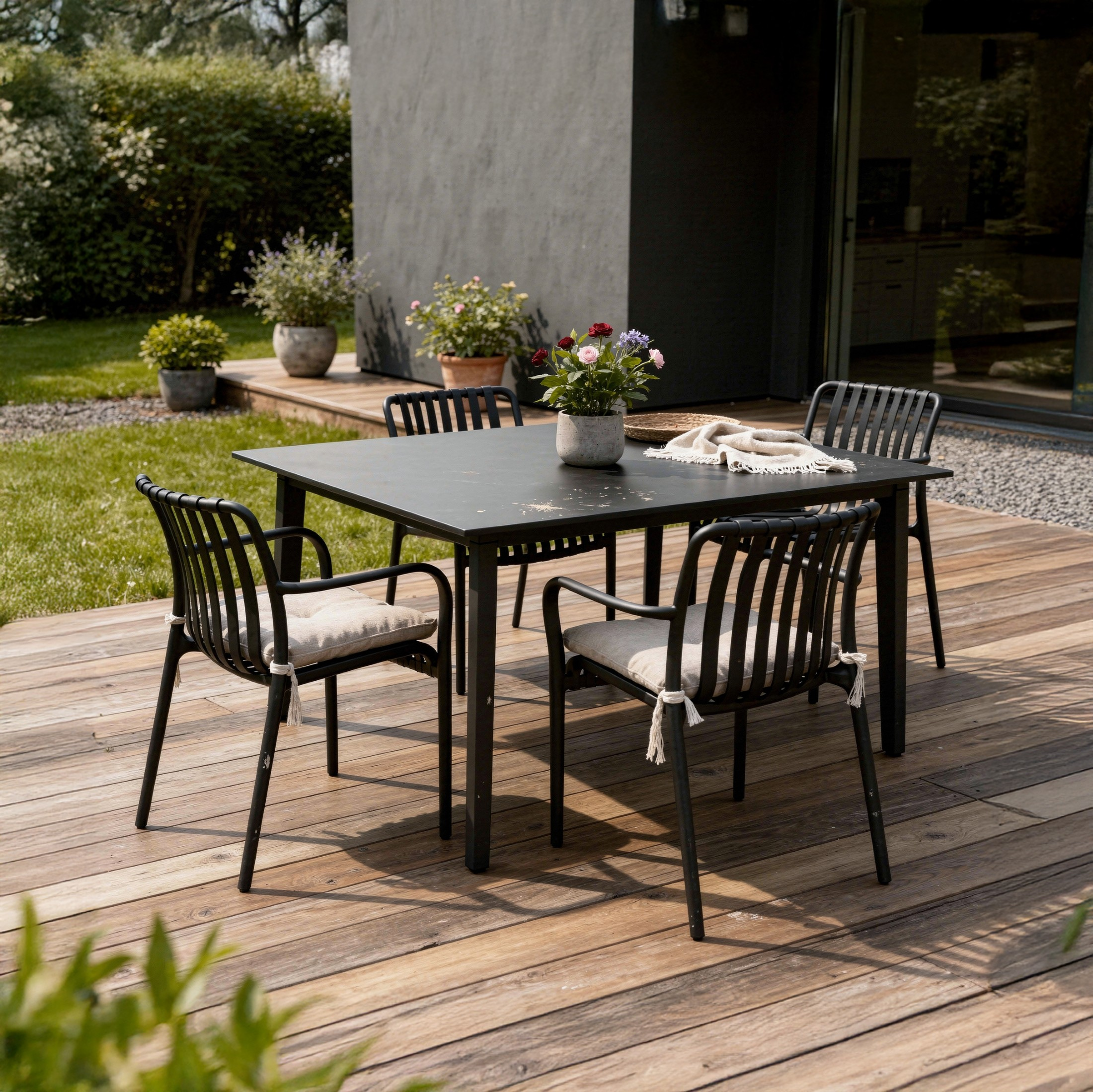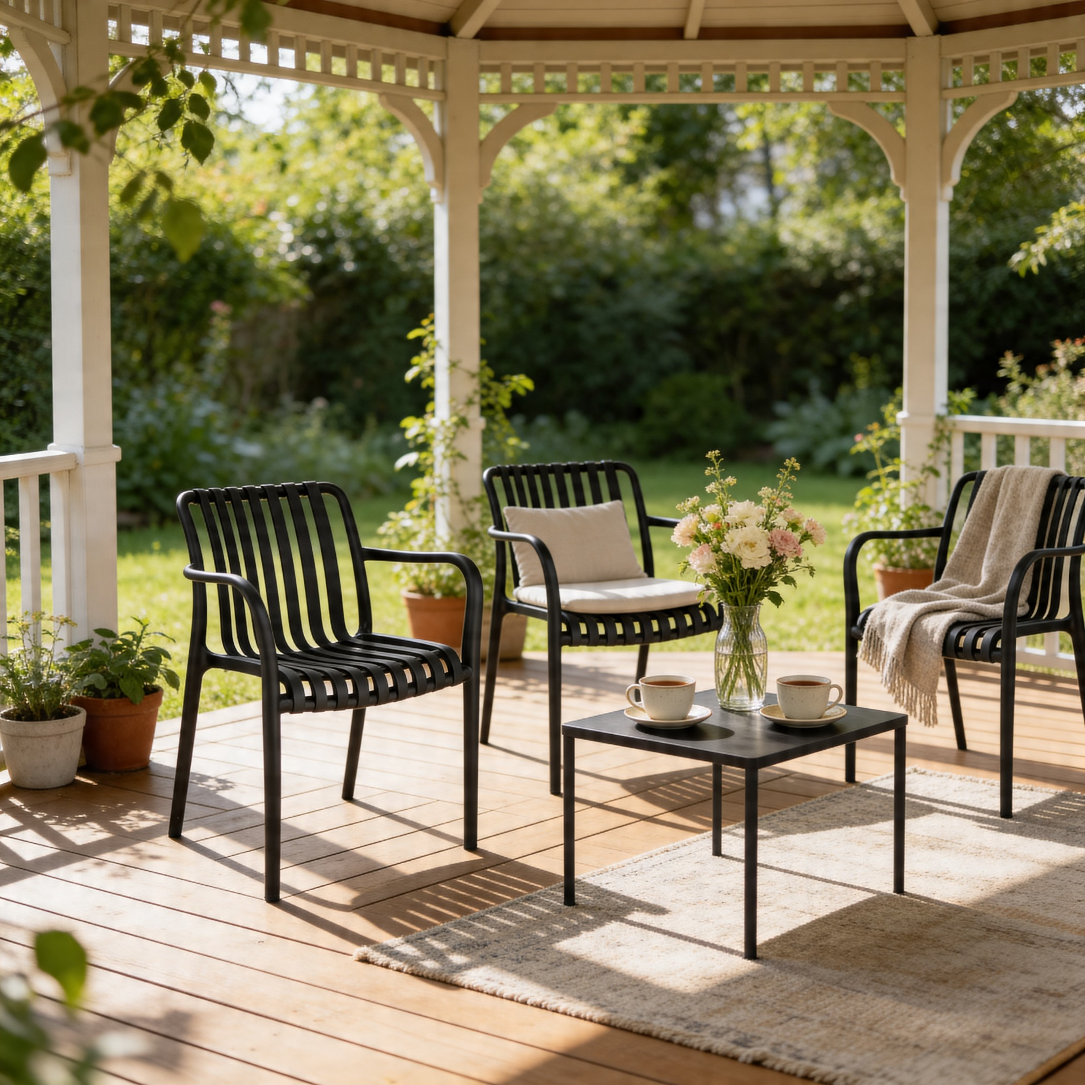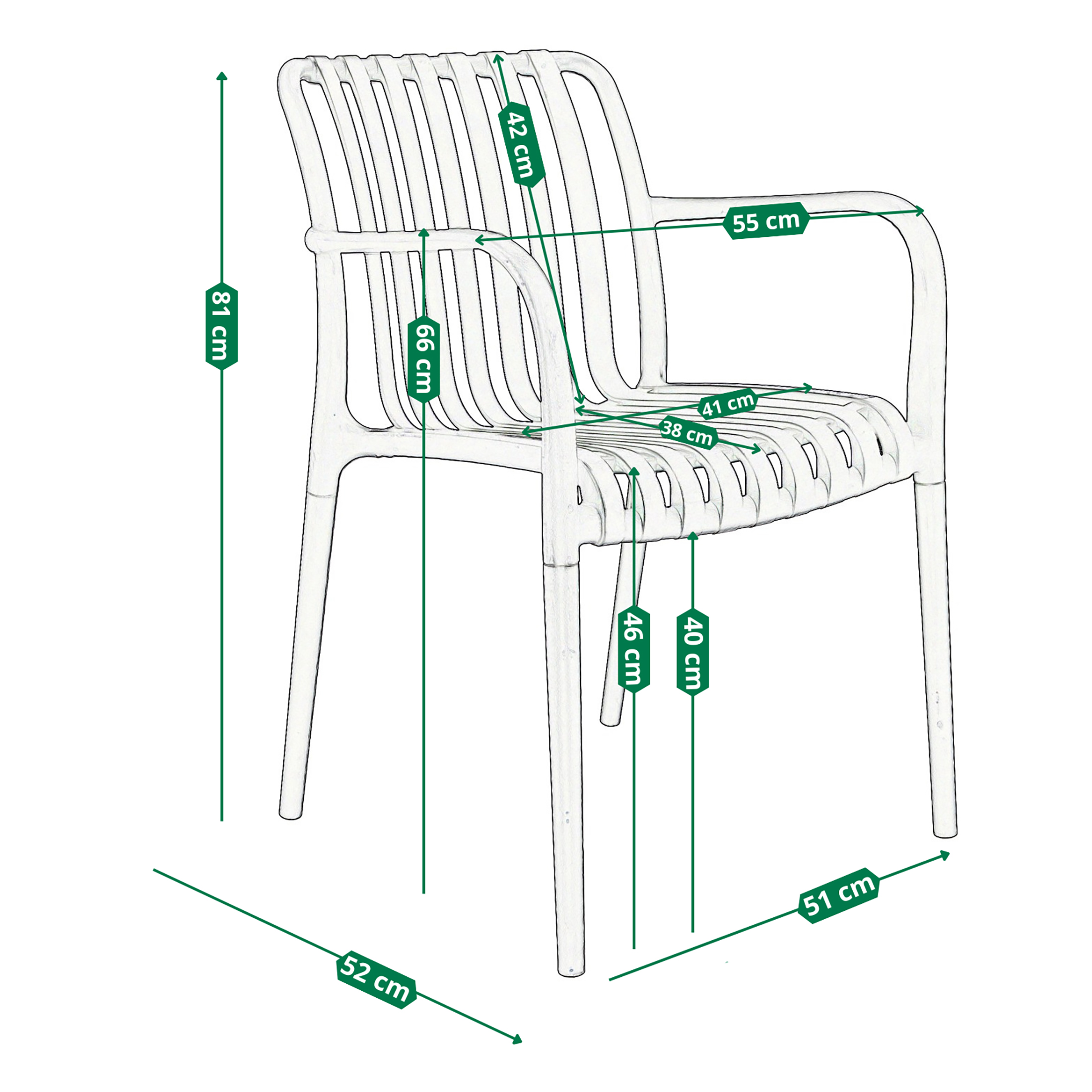 Przemyślana forma idzie tu w parze z praktycznymi rozwiązaniami - model RAIAS można sztaplować, czyli wygodnie ustawiać jedno krzesło na drugim, co ułatwia przechowywanie i pozwala zaoszczędzić miejsce poza sezonem. Nogi wyposażono w gumowe podkładki, które zwiększają stabilność i chronią podłoże przed zarysowaniami, co docenisz szczególnie na balkonach z płytkami czy tarasach z deską kompozytową. Jednoczęściowa, solidna konstrukcja, wygodne podłokietniki i łatwa pielęgnacja sprawiają, że RAIAS doskonale nadaje się do codziennego relaksu.