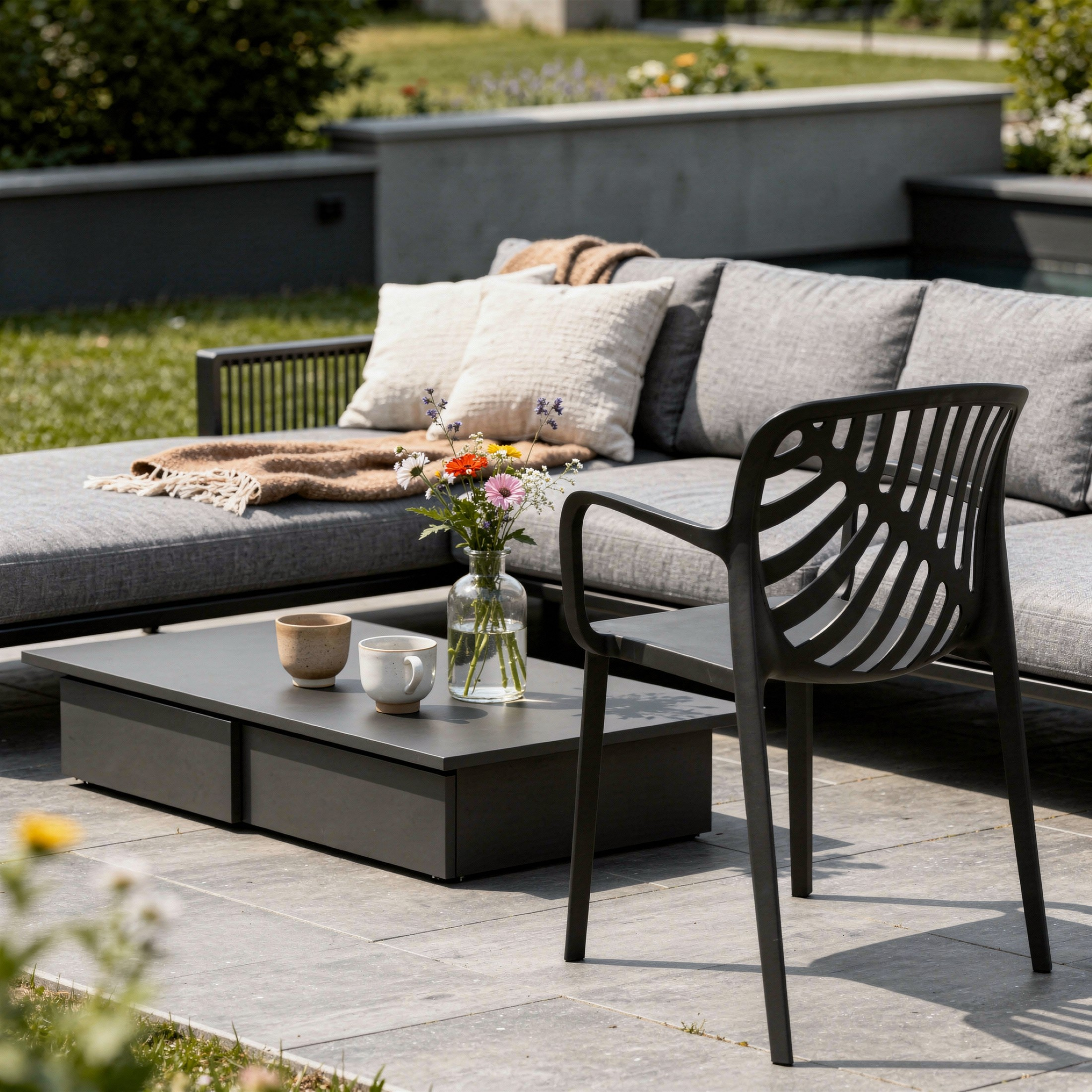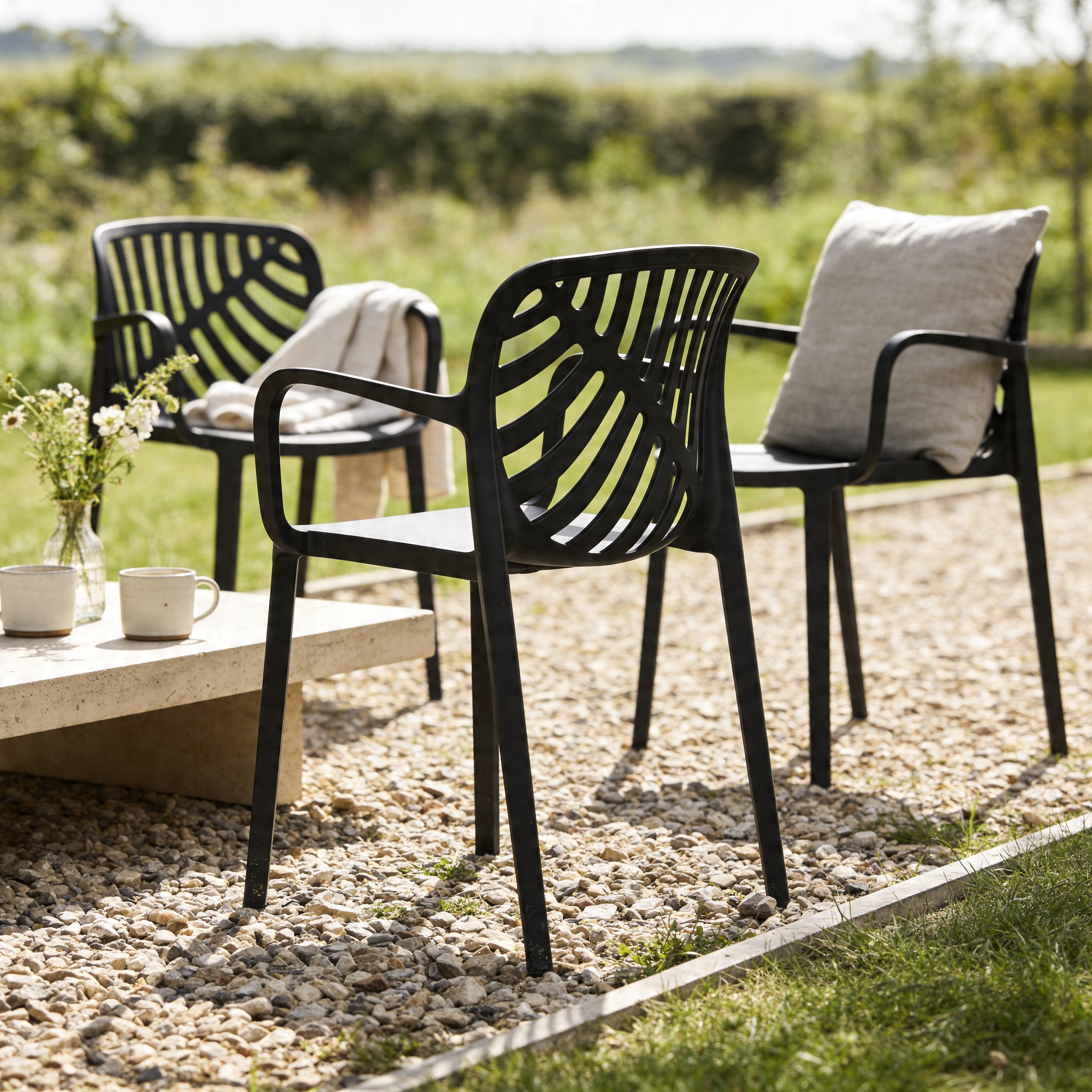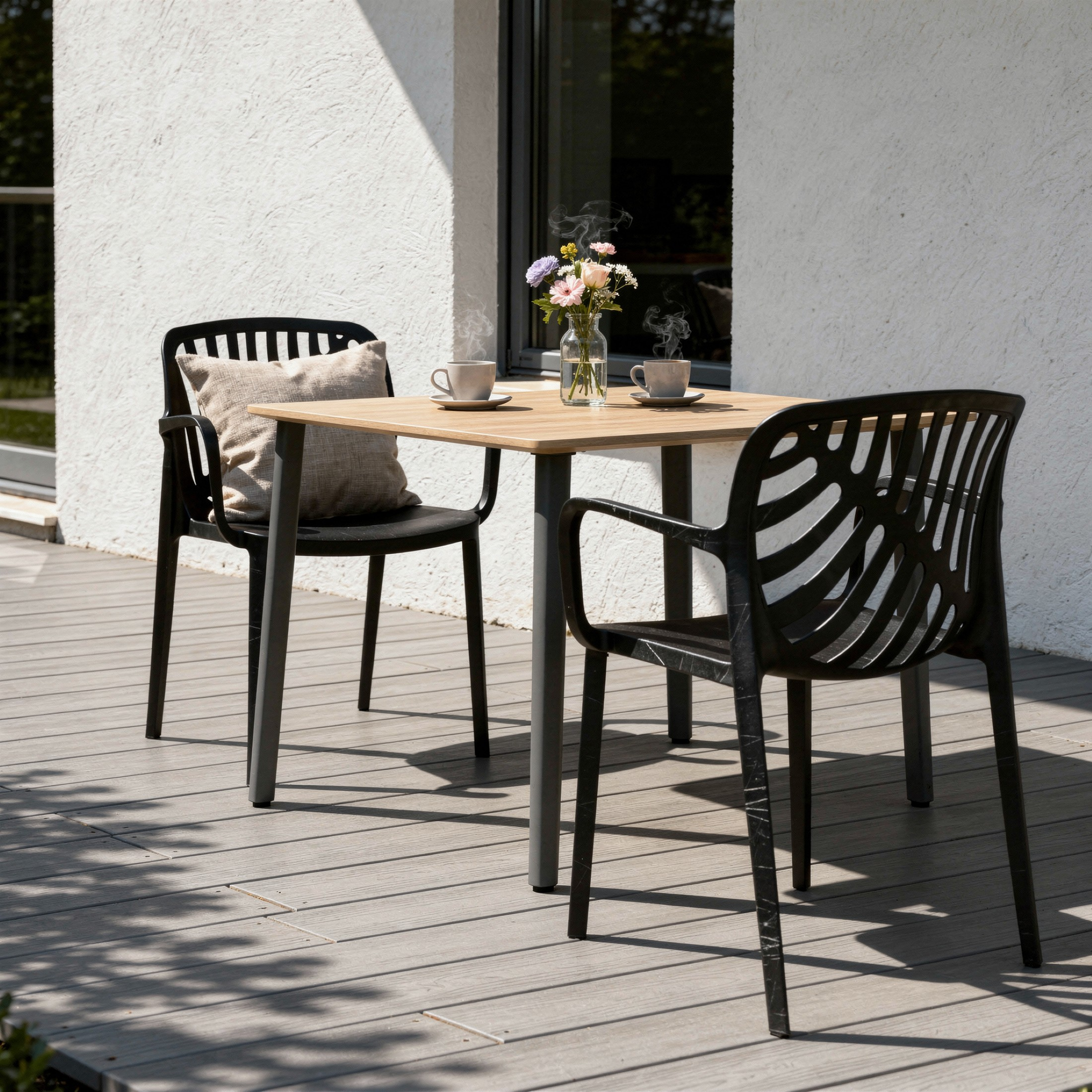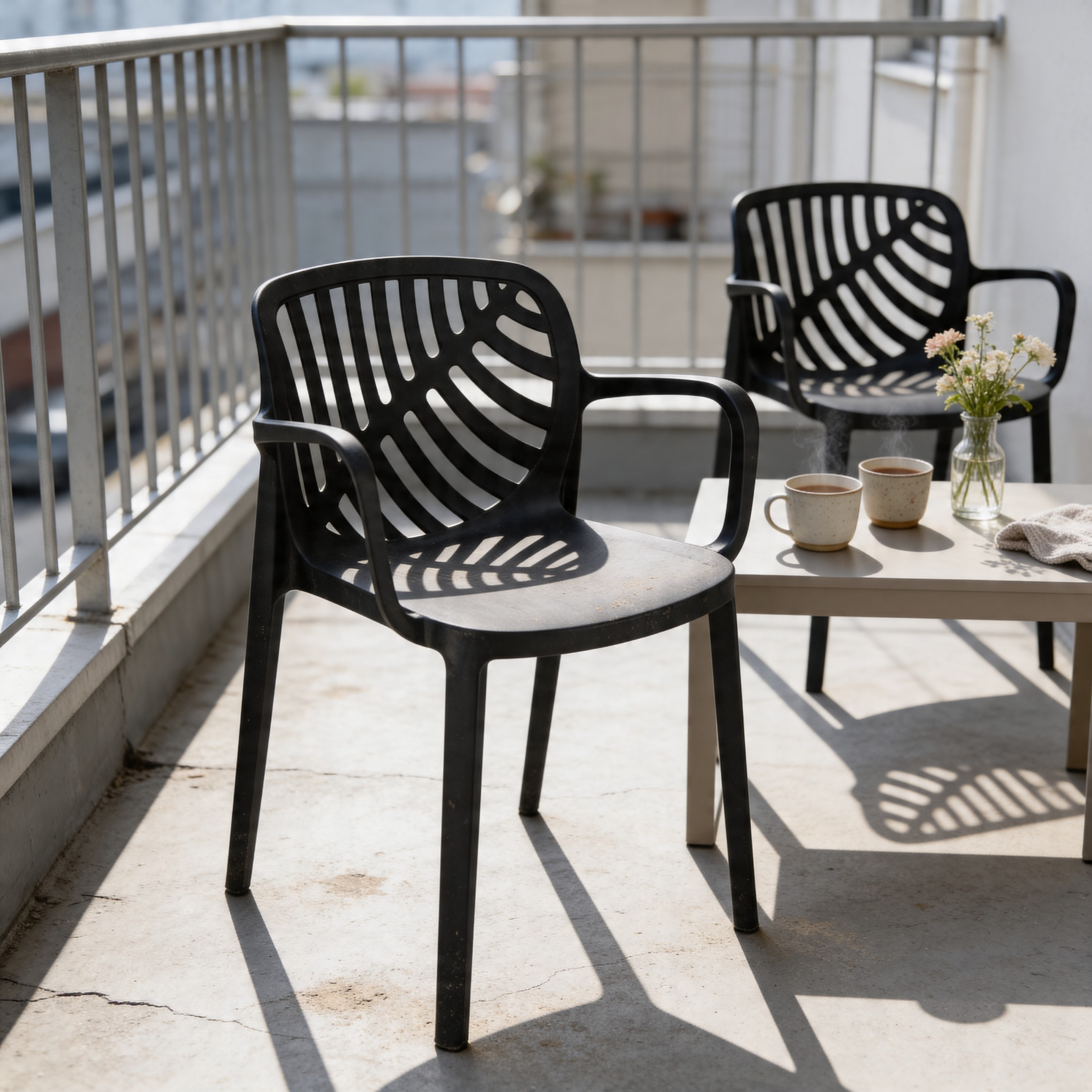 Przemyślana forma idzie tu w parze z praktycznymi rozwiązaniami - model TEREV można sztaplować, czyli wygodnie ustawiać jedno krzesło na drugim, co ułatwia przechowywanie i pozwala zaoszczędzić miejsce poza sezonem. Nogi wyposażono w gumowe podkładki, które zwiększają stabilność i chronią podłoże przed zarysowaniami, co docenisz szczególnie na balkonach z płytkami czy tarasach z deską kompozytową. Jednoczęściowa, solidna konstrukcja, wygodne podłokietniki i łatwa pielęgnacja sprawiają, że TEREV doskonale nadaje się do codziennego relaksu.