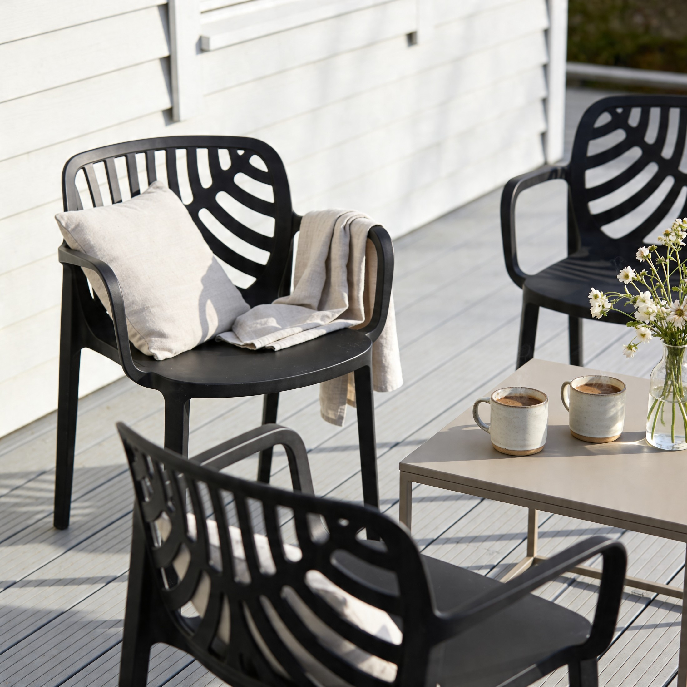 Krzesło TEREV łączy wytrzymałość tworzywa wysokiej jakości z nowoczesnym designem inspirowanym motywem liści. Jest lekkie, a jednocześnie stabilne, odporne na warunki zewnętrzne i nie wymaga żadnej pielęgnacji.