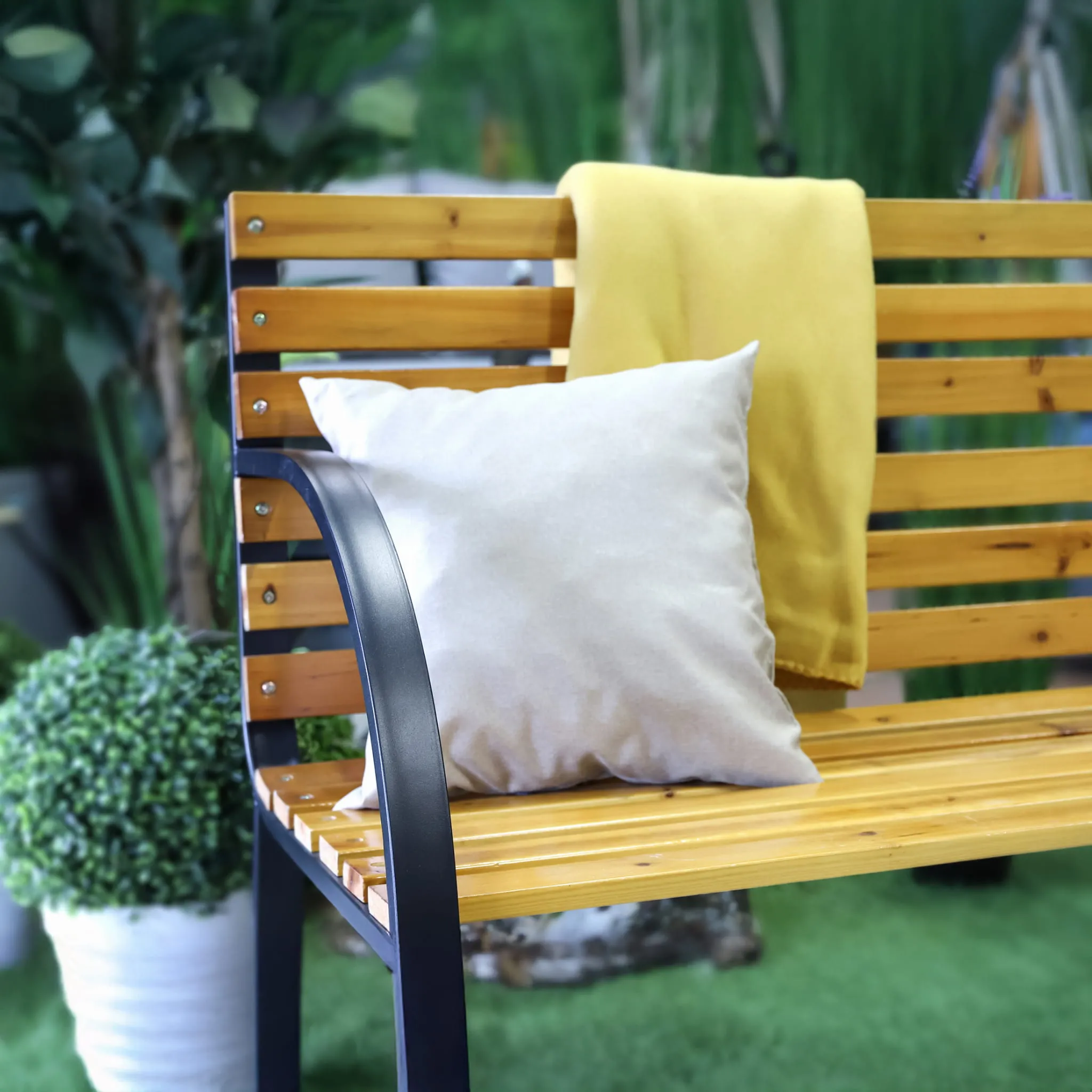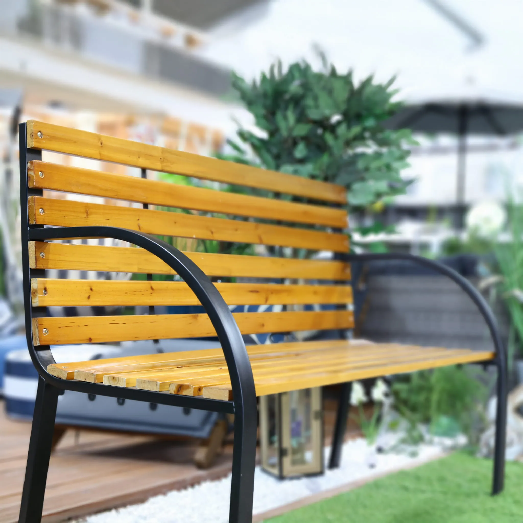 - Uniwersalna estetyka - ławka doskonale komponuje się w ogrodzie, tarasie, z altaną, balkonem, a także wnętrzami w stylu loftowym czy industrialnym.