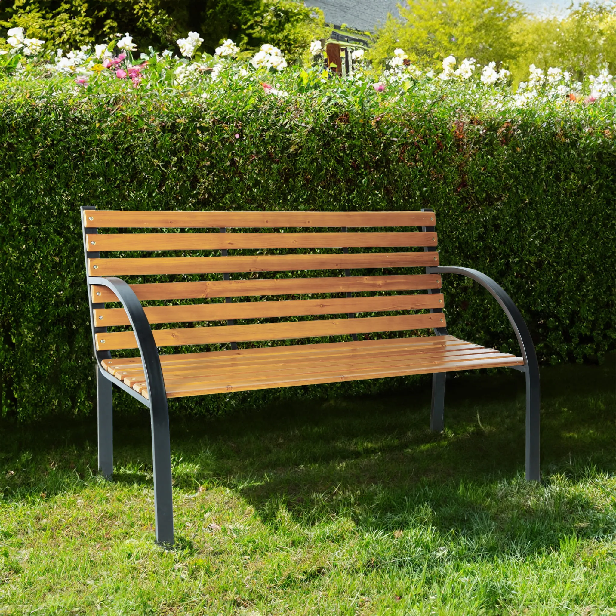 Ławka sprawdzi się w klasycznym ogrodzie ustawiona przed domem lub przy rabacie kwiatów.