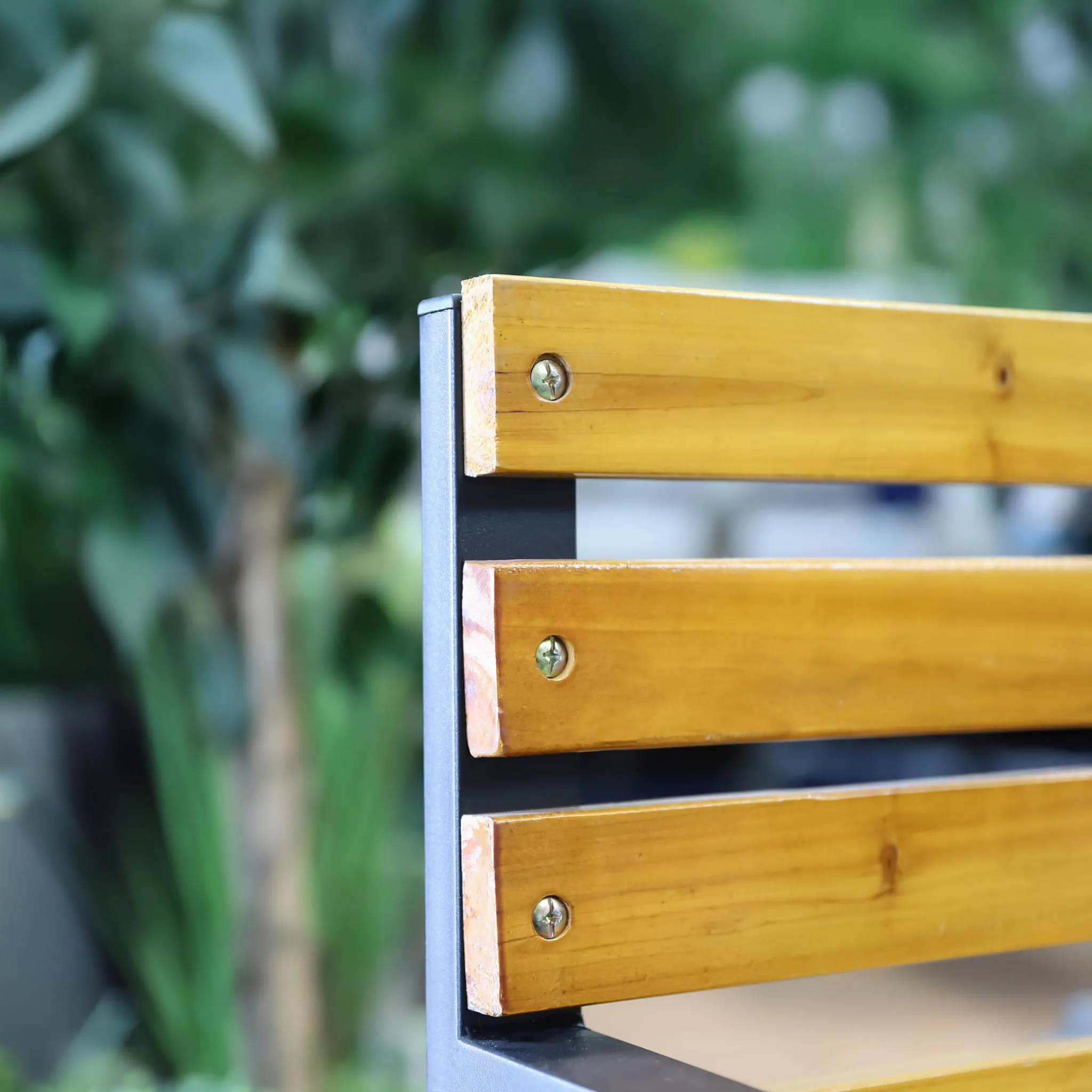 - Wyrafinowane połączenie drewna i stali - solidna stalowa konstrukcja zestawiona z naturalnymi, starannie wykończonymi drewnianymi listwami tworzy mebel o ponadczasowym, eleganckim charakterze.