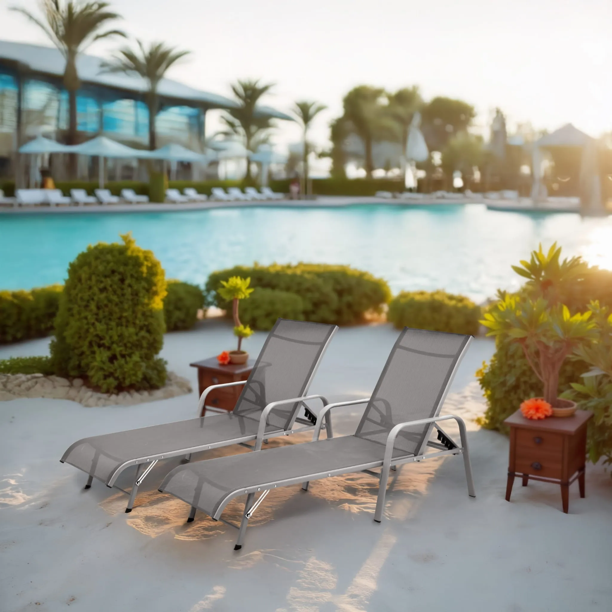 Regulowane oparcie 5 pozycji - Dopasuj kąt nachylenia od pozycji siedzącej do niemal leżącej – idealny do relaksu, czytania lub opalania.