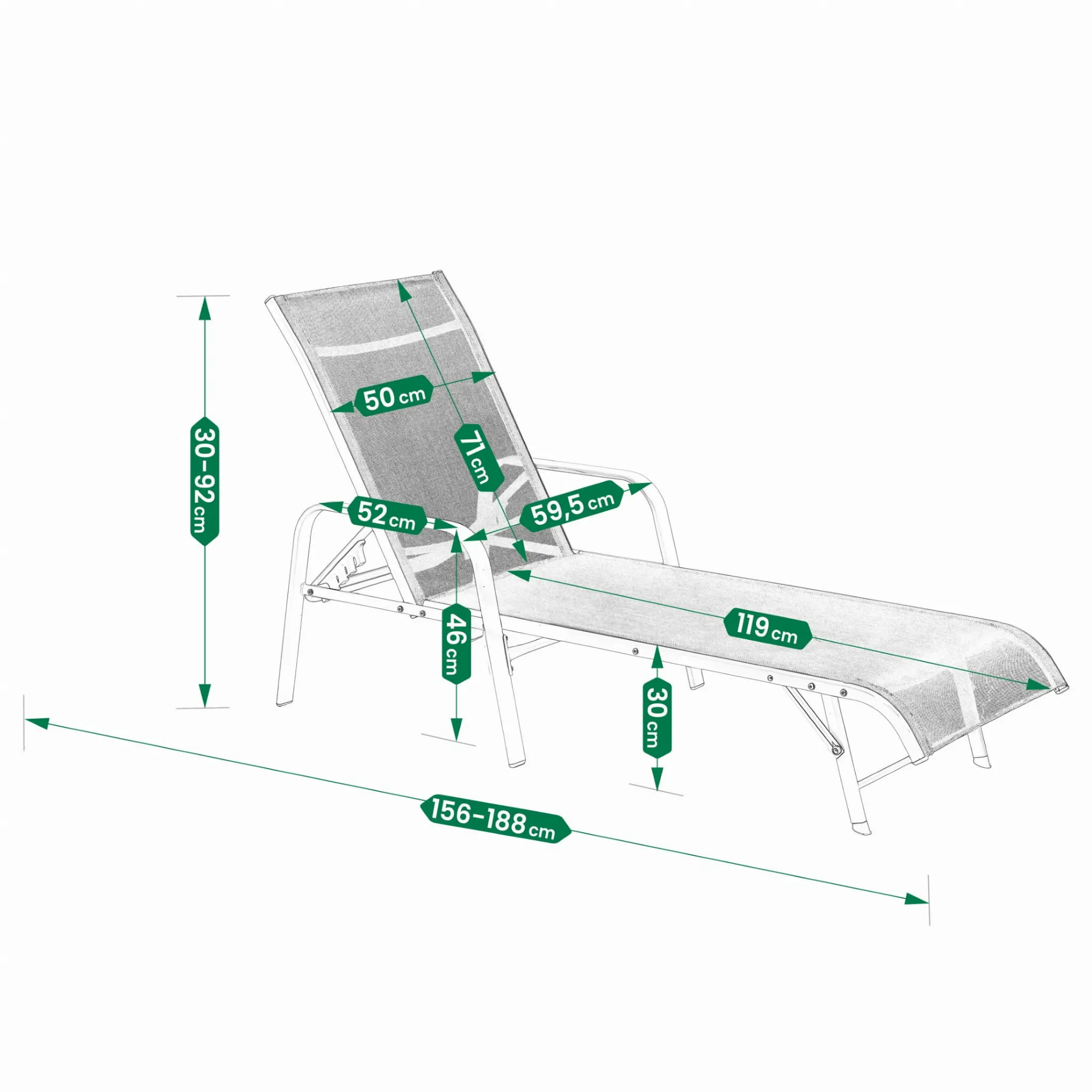 Dzięki solidnej stalowej konstrukcji i trwałemu materiałowi tekstylenowemu leżanka łączy w sobie funkcjonalność i nowoczesny wygląd. Oparcie z możliwością regulacji w aż 5 pozycjach pozwala idealnie dopasować pozycję siedzenia lub leżenia do Twoich potrzeb. Materiał siedziska jest przewiewny, odporny na promieniowanie UV i łatwy do utrzymania w czystości.