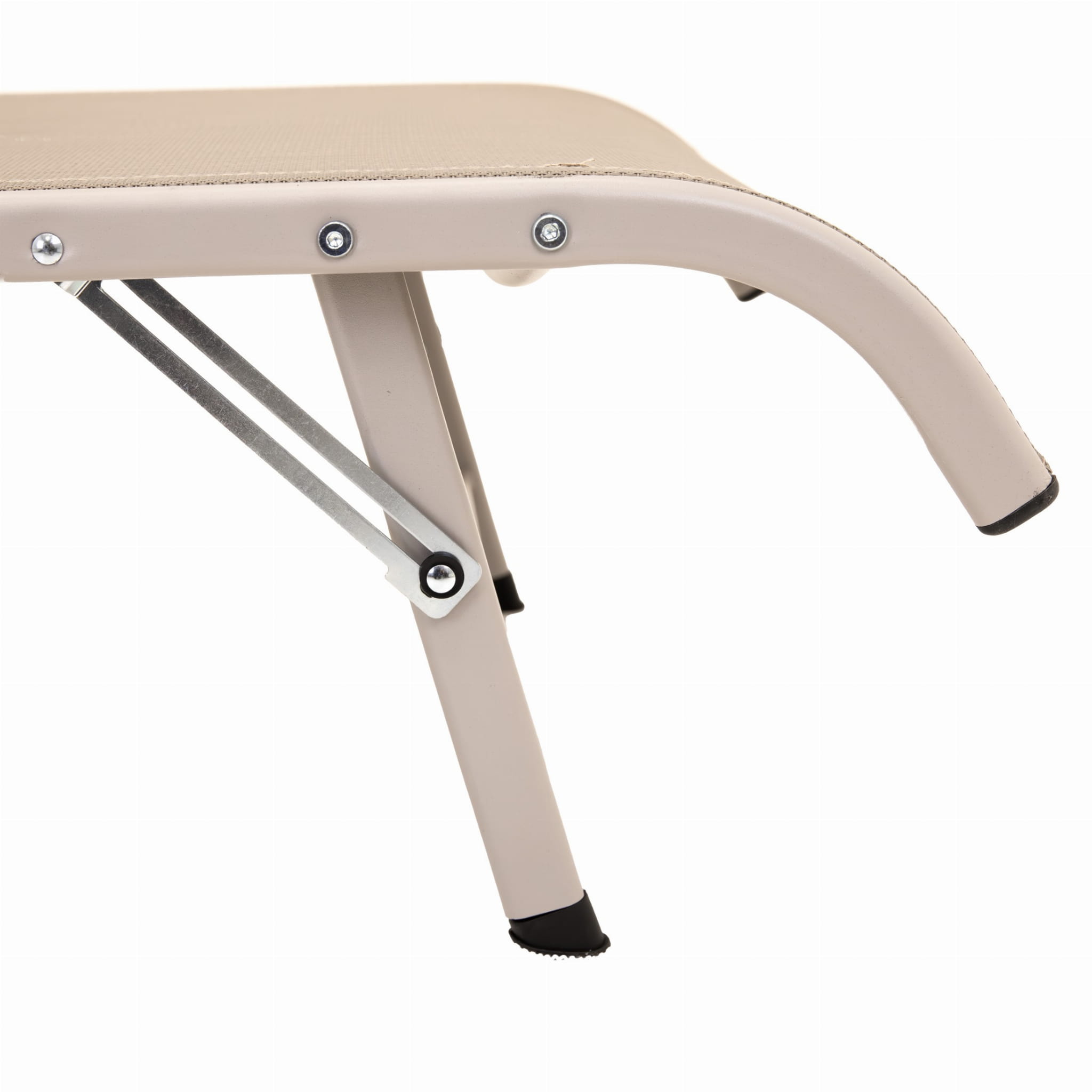Dzięki solidnej stalowej konstrukcji i trwałemu materiałowi tekstylenowemu leżanka łączy w sobie funkcjonalność i nowoczesny wygląd. Oparcie z możliwością regulacji w aż 5 pozycjach pozwala idealnie dopasować pozycję siedzenia lub leżenia do Twoich potrzeb. Materiał siedziska jest przewiewny, odporny na promieniowanie UV i łatwy do utrzymania w czystości.