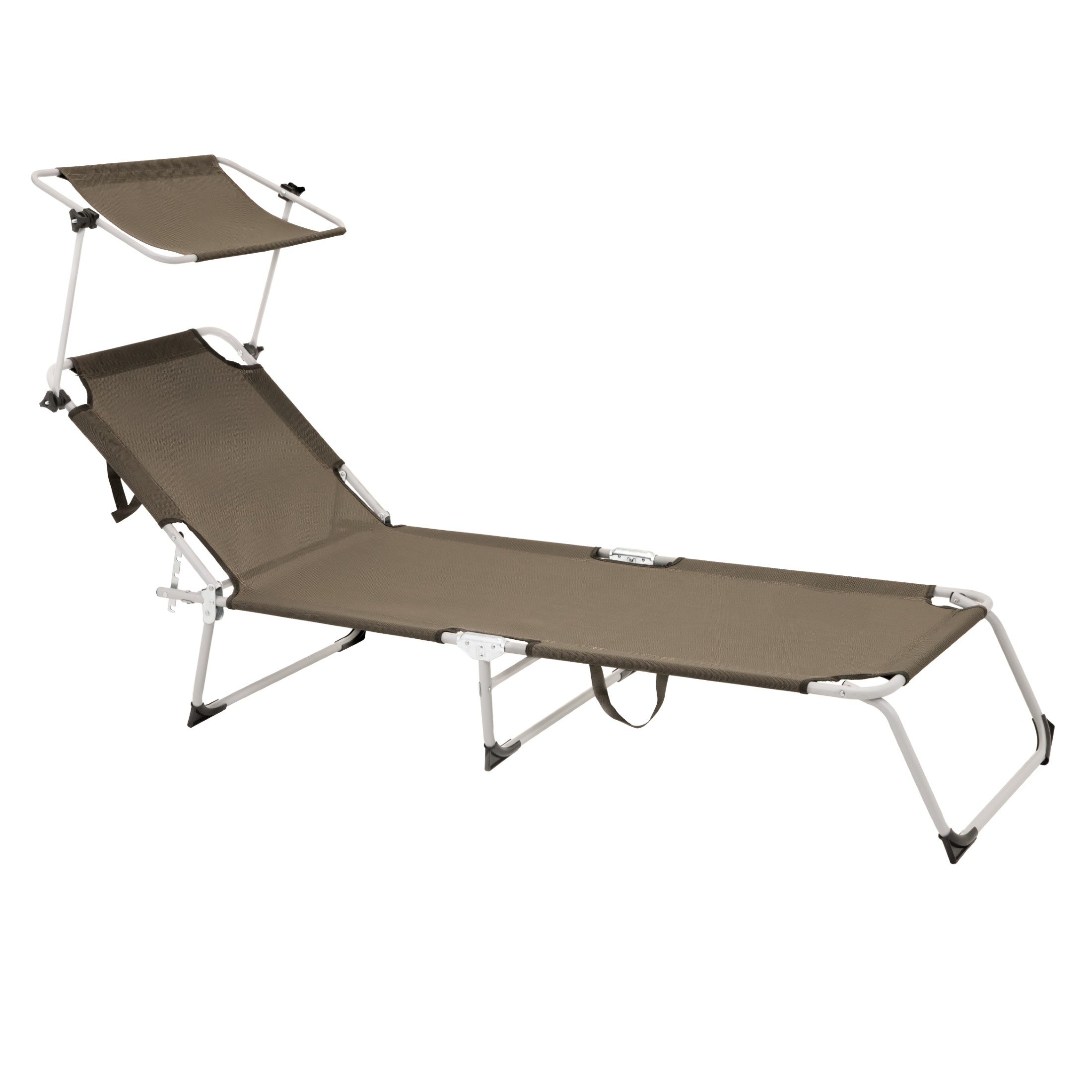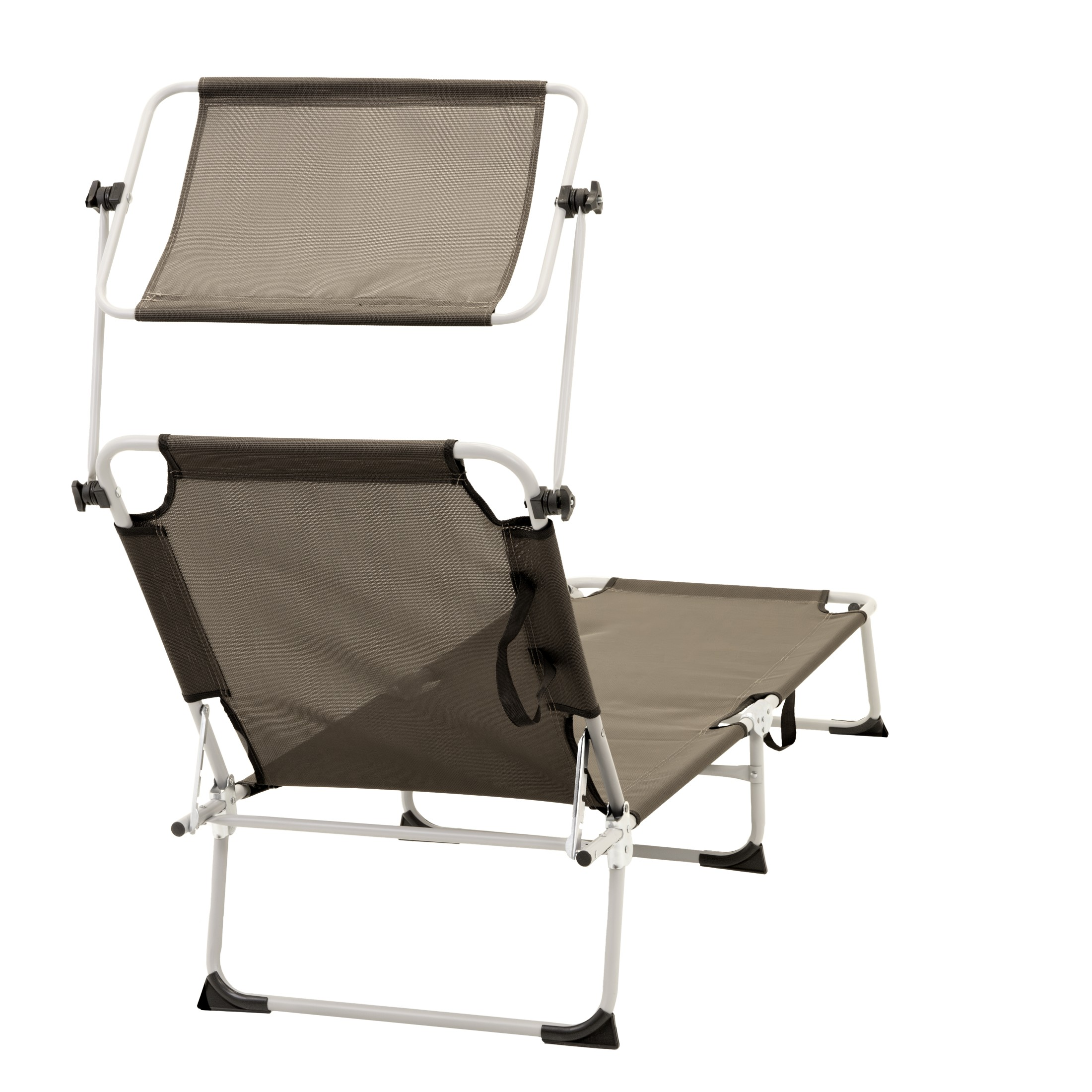Leżanka ogrodowa składana z daszkiem i regulowanym oparciem