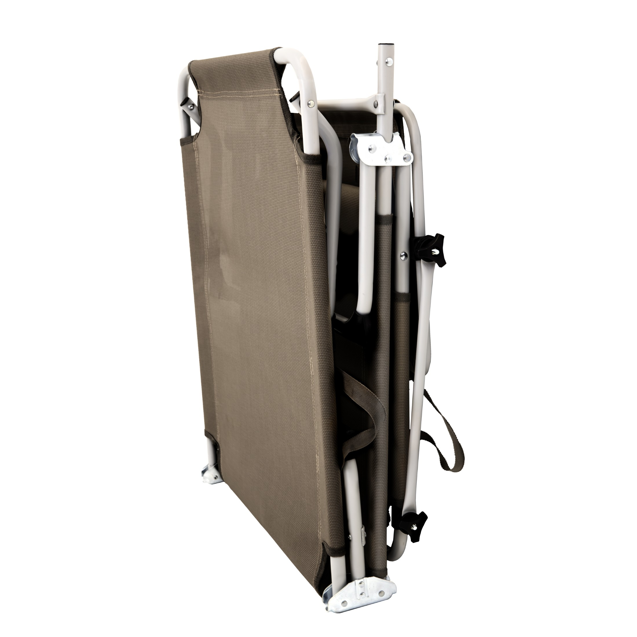 Dzięki składanej konstrukcji i regulowanym pozycjom oparcia, z łatwością dopasujesz ją do własnych potrzeb – czy to do opalania, czy do drzemki w cieniu.