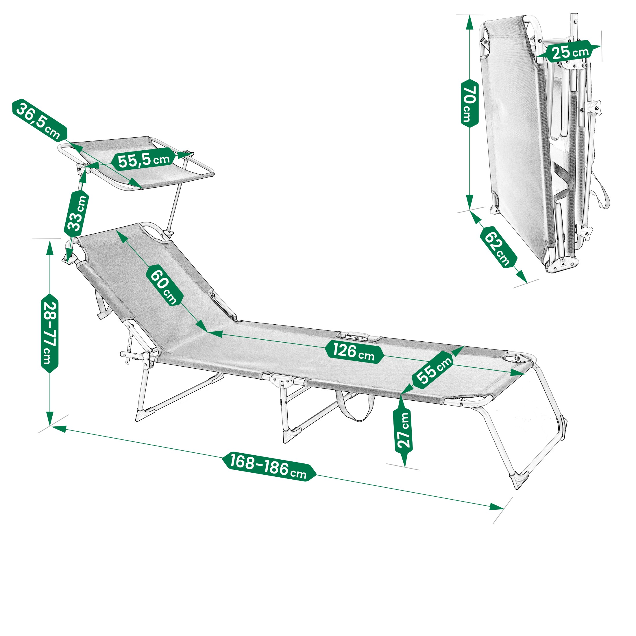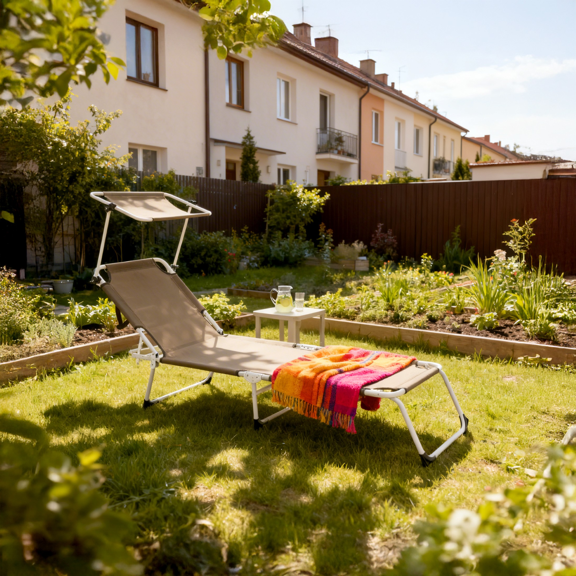 Odkryj nowy wymiar wypoczynku z naszą leżanką ogrodową z daszkiem – idealnym towarzyszem zarówno na słoneczne dni w ogrodzie, jak i podczas wypadów na działkę, plażę czy biwak.