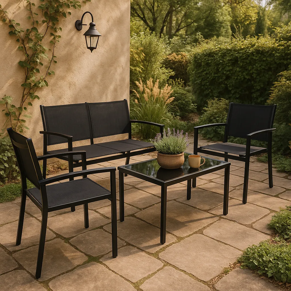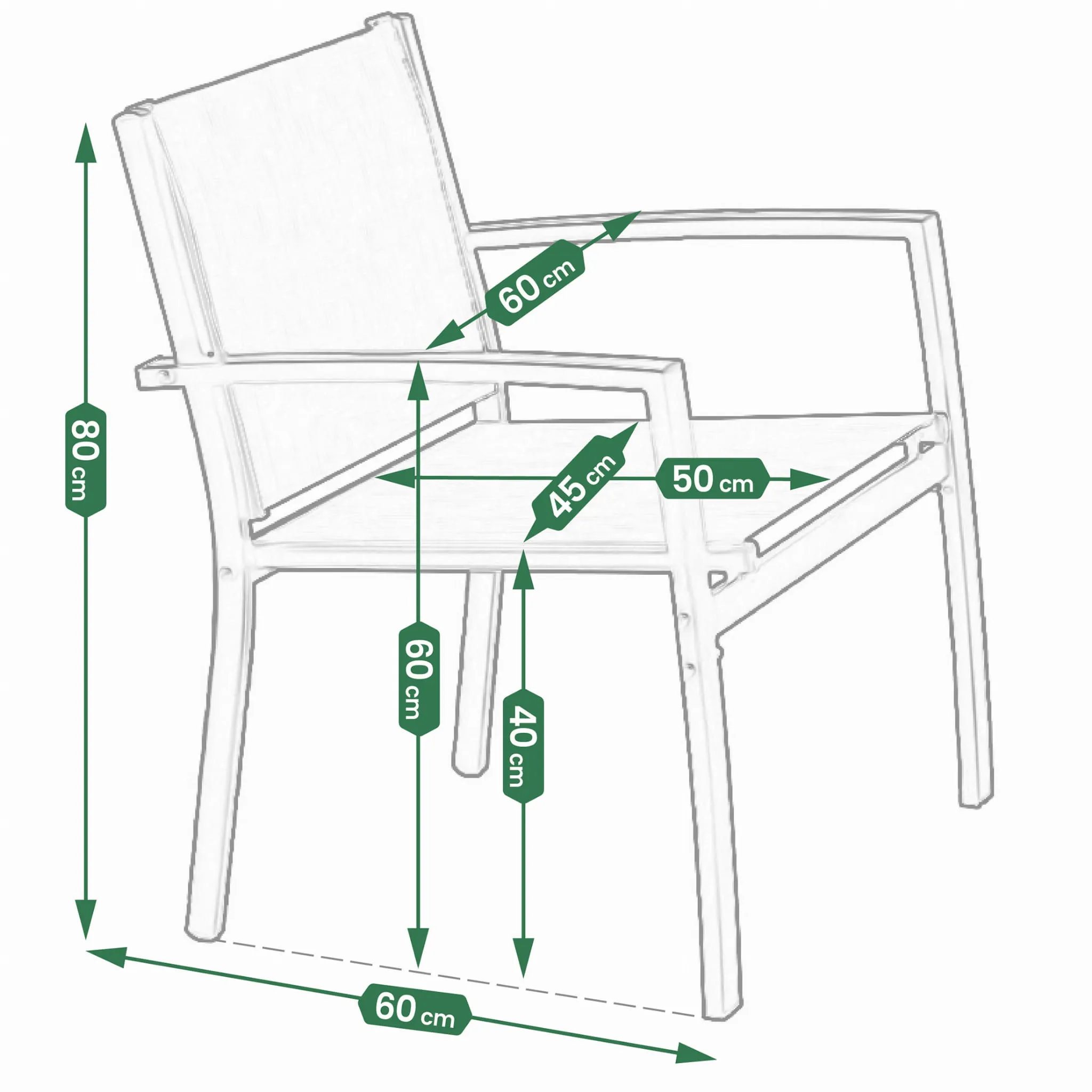 Nowoczesne i łatwe w utrzymaniu meble ogrodowe z wytrzymałej siatki textilene, która zapewnia stabilność i przyczynia się do znacznego zwiększenia komfortu siedzenia.