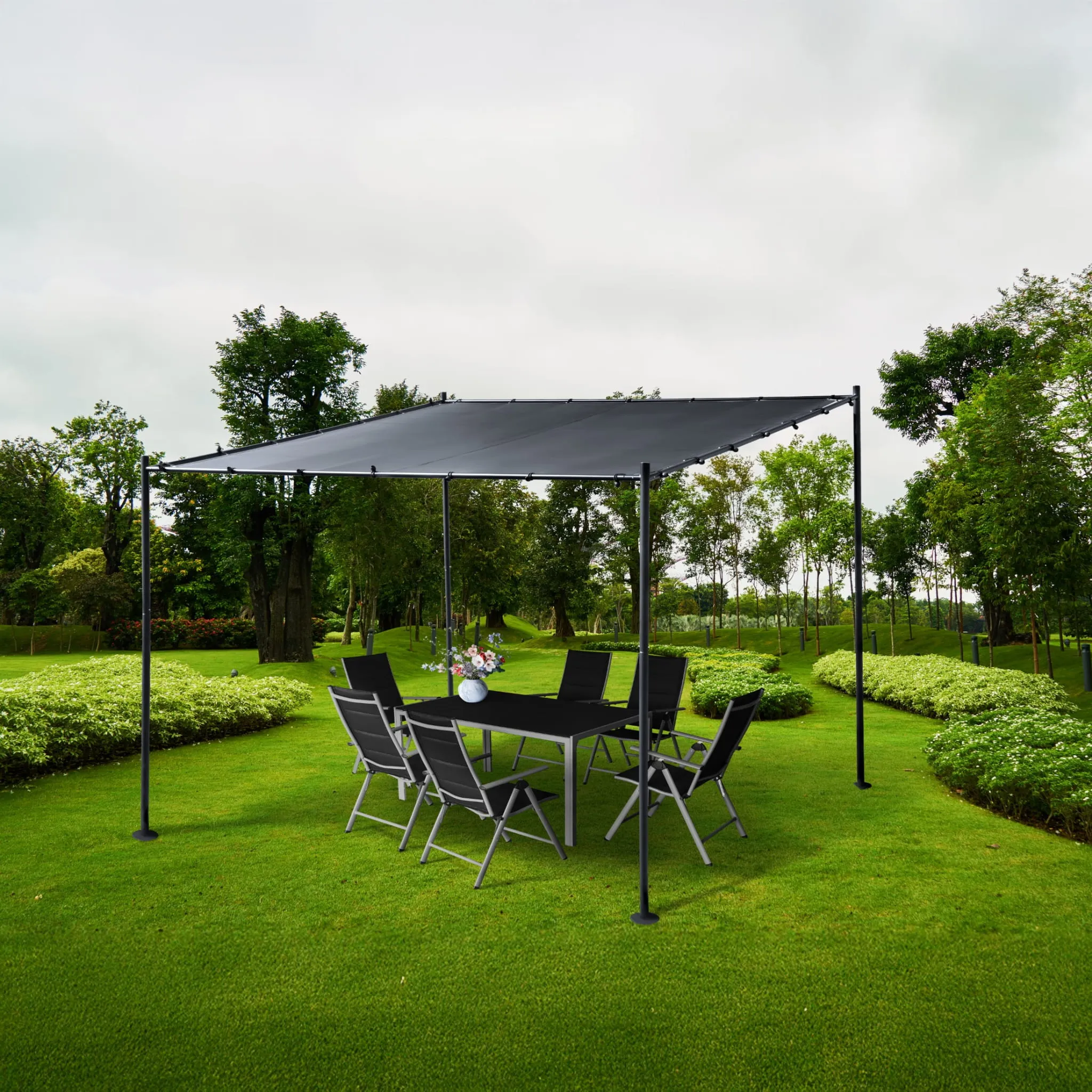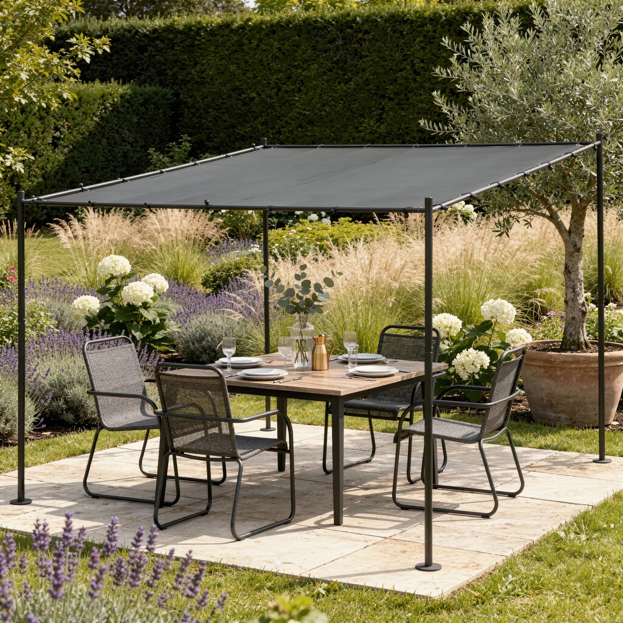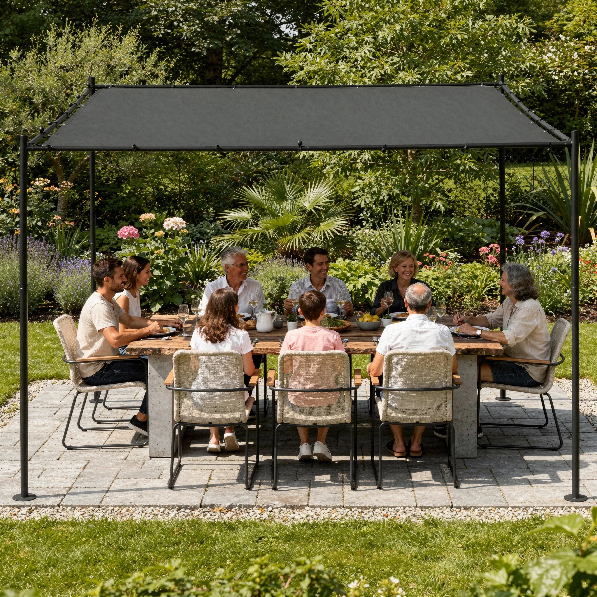 Duża, stalowa pergola ogrodowa to doskonały sposób na odmianę Twojego tarasu, ogrodu czy patio. Dzięki niej stworzysz elegancką strefę relaksu, chronioną przed słońcem, idealną na poranną kawę, wieczorne spotkania z bliskimi czy letnie przyjęcia.