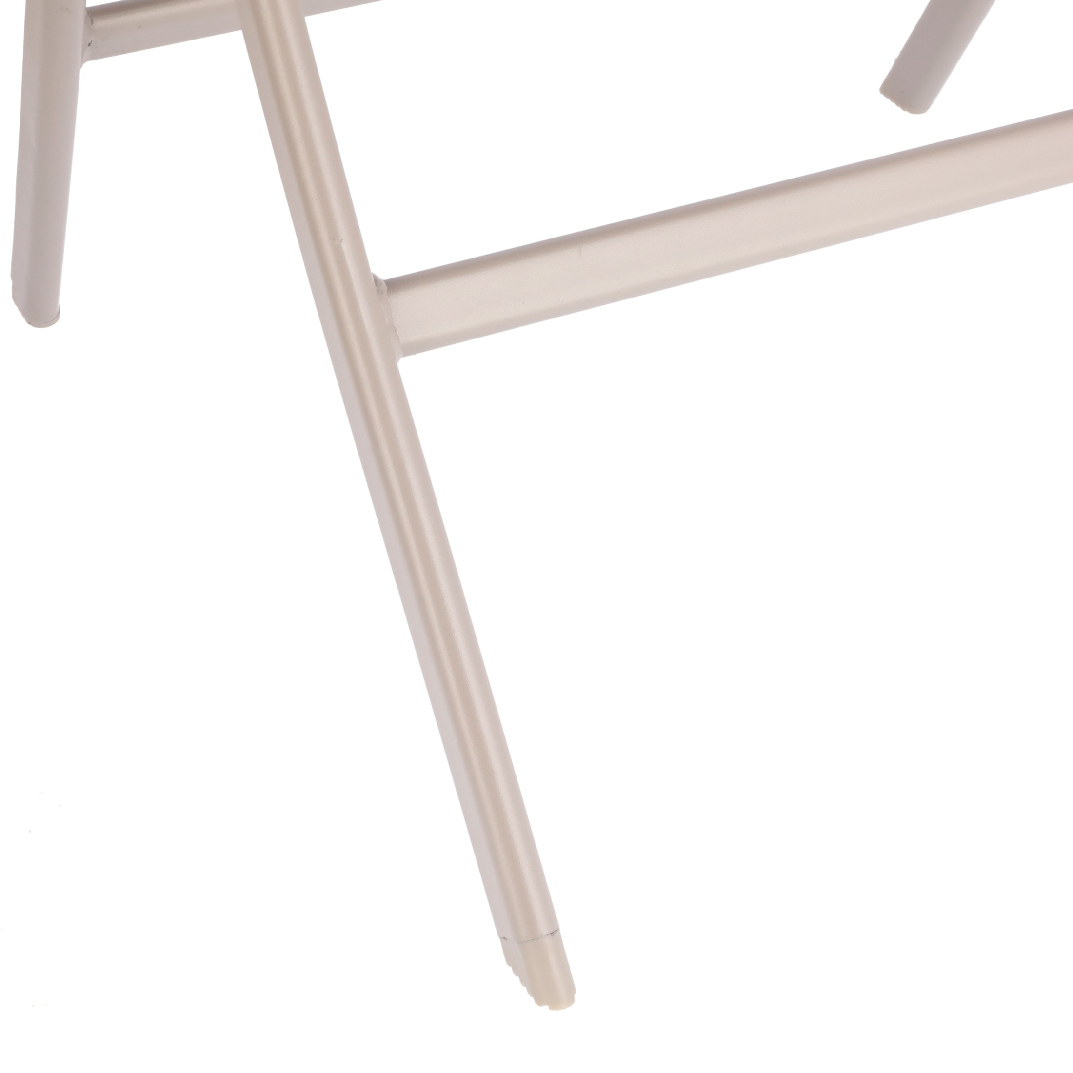 Beżowy stolik metalowy ze szkłem hartowanym łączy elegancję z realną wytrzymałością i stabilnością. Karbowane, antypoślizgowe nóżki trzymają się podłoża, a składana konstrukcja pozwala szybko schować stolik, gdy nie jest potrzebny. Złożony fabrycznie - gotowy do użycia od razu po wyjęciu z kartonu.
