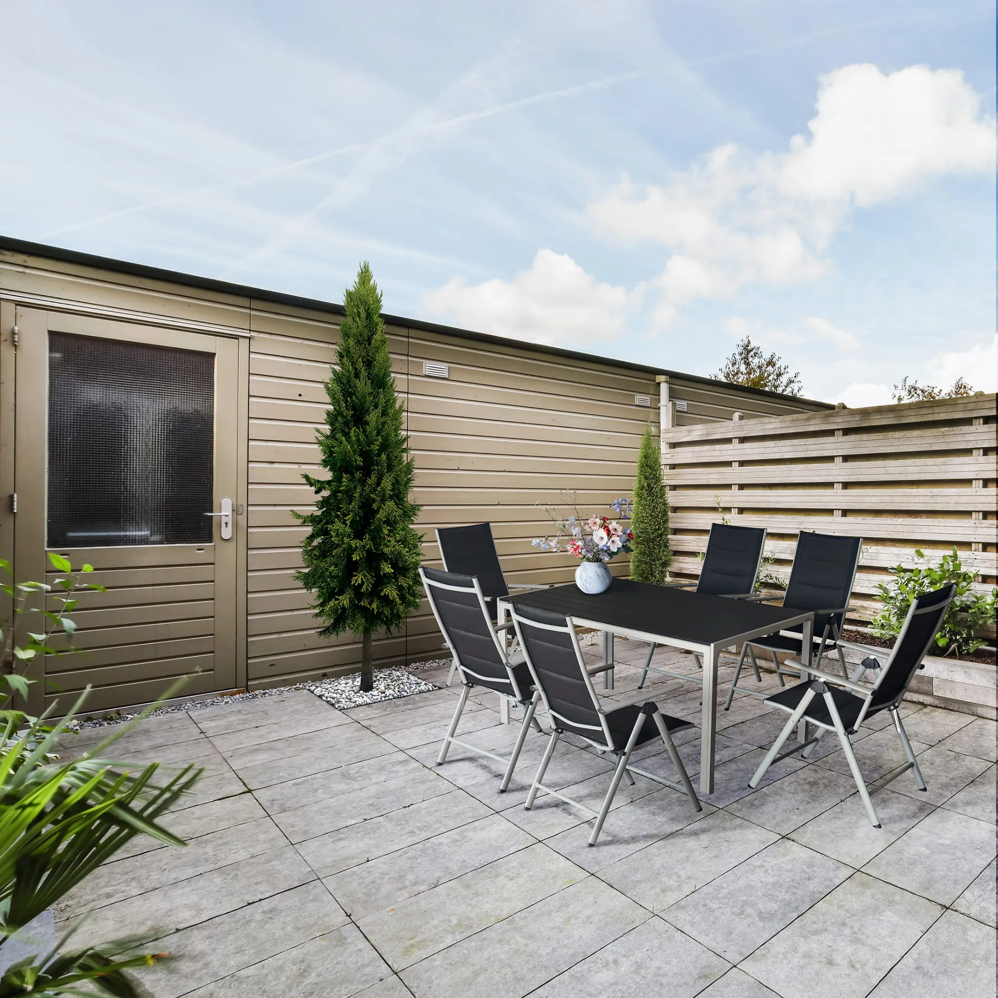 Wykonany z aluminium i tworzywa sztucznego, odpornych na warunki atmosferyczne - idealnie sprawdzi się w ogrodach. Jego wykonanie z pewnością pozwoli na wieloletnie użytkowanie.