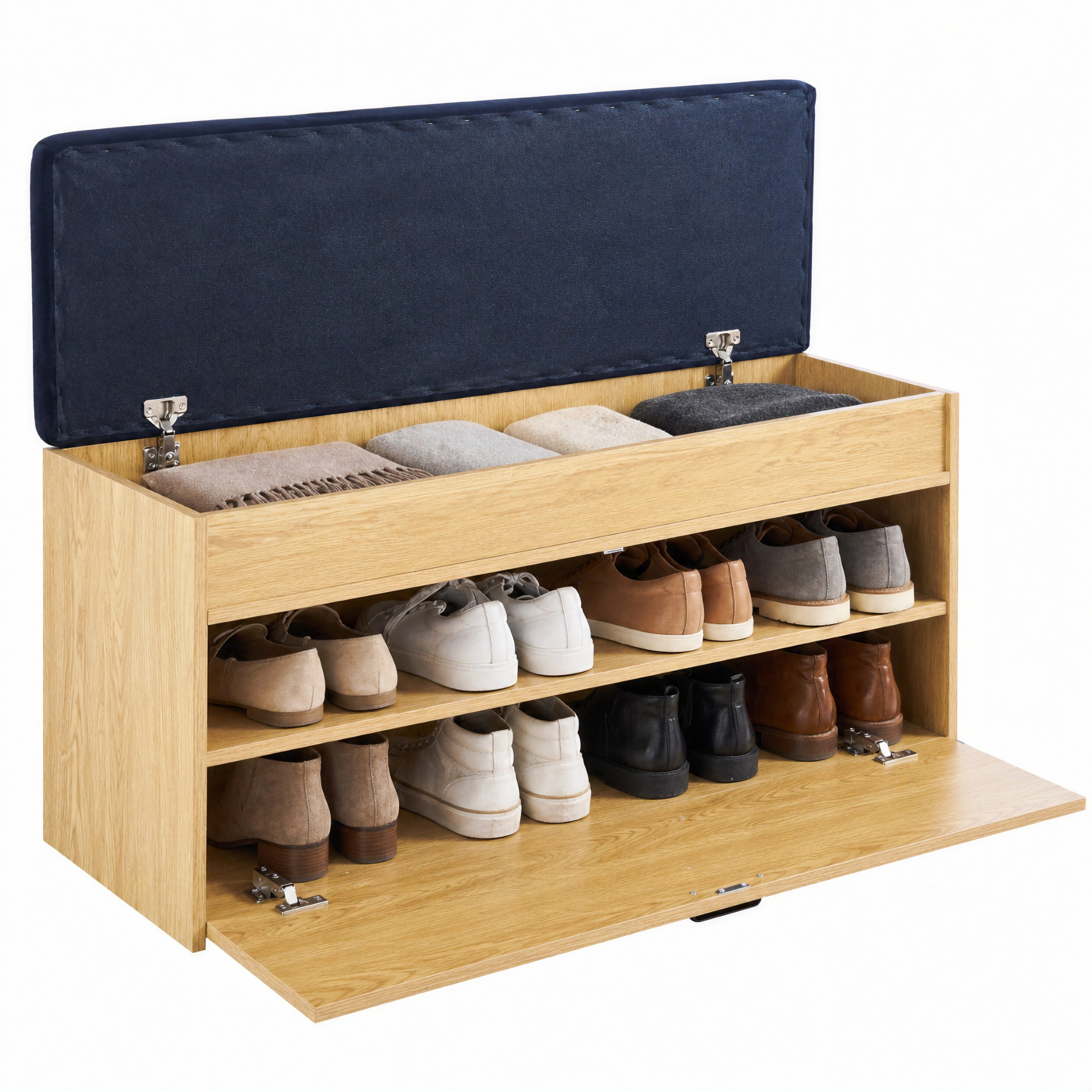 - Dwustopniowa przestrzeń na obuwie z uchylnym frontem