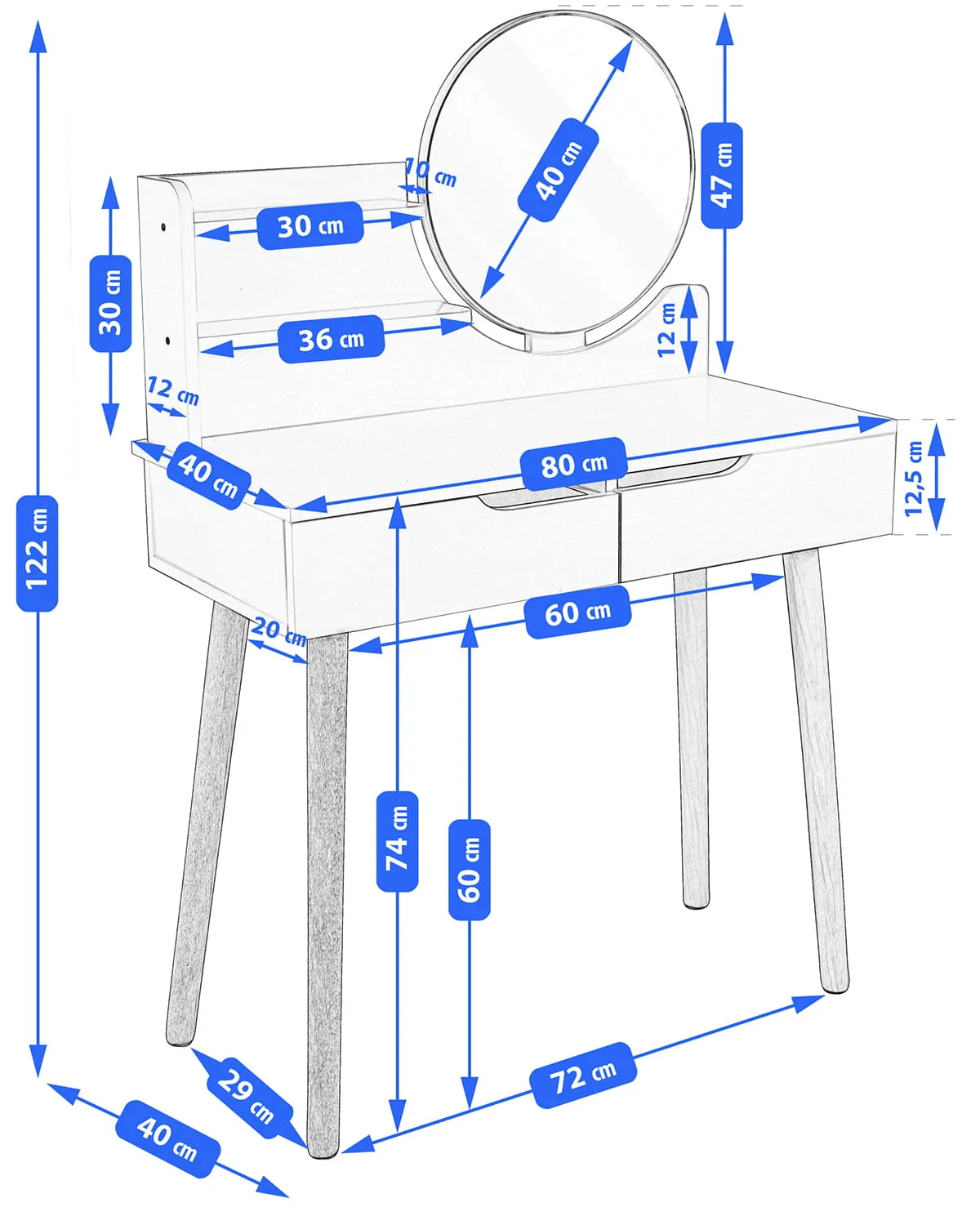 Mebel doskonale pasuje do sypialni jako praktyczne miejsce do wykonania makijażu, fryzury, codziennych pielęgnacyjnych czynności kosmetycznych, a także do napisania listu czy też przechowywania wielu rozmaitych drobiazgów.
