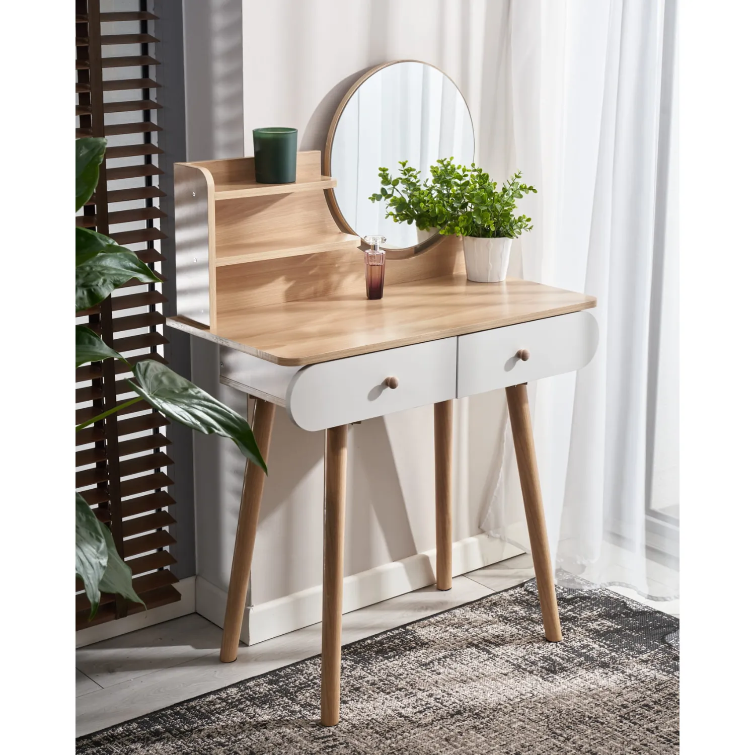 Toaletka kosmetyczna z lustrem - SCANDI biała / buk