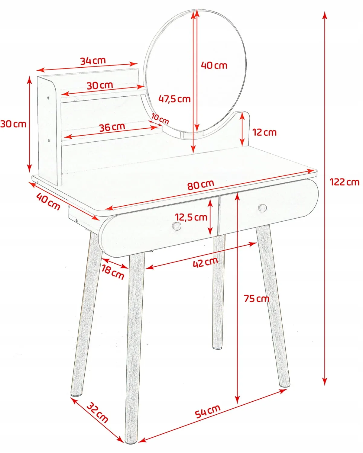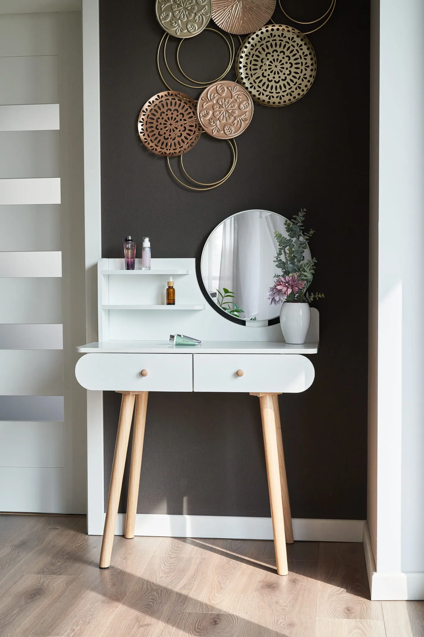 Mebel doskonale pasuje do sypialni jako praktyczne miejsce do wykonania makijażu, fryzury, codziennych pielęgnacyjnych czynności kosmetycznych, a także do napisania listu czy też przechowywania wielu rozmaitych drobiazgów.
