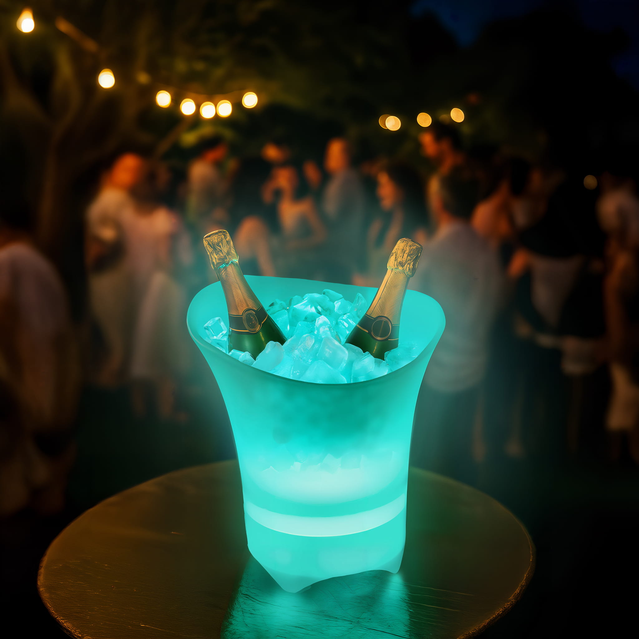 Ten LED-owy cooler to nie tylko praktyczny pojemnik na lód i butelki – to także spektakularna dekoracja, która robi efekt WOW na weselach, domówkach, garden party czy eventach firmowych.