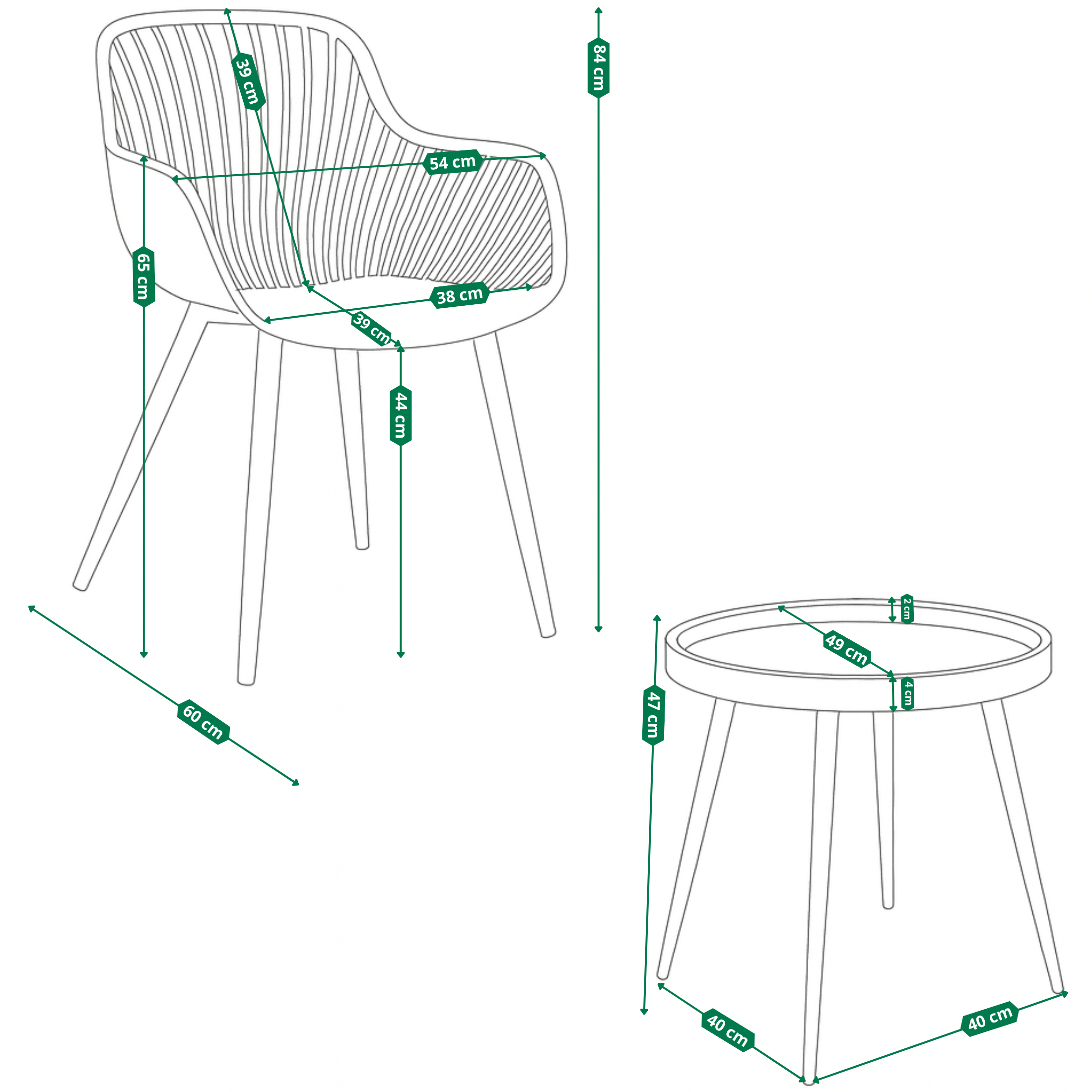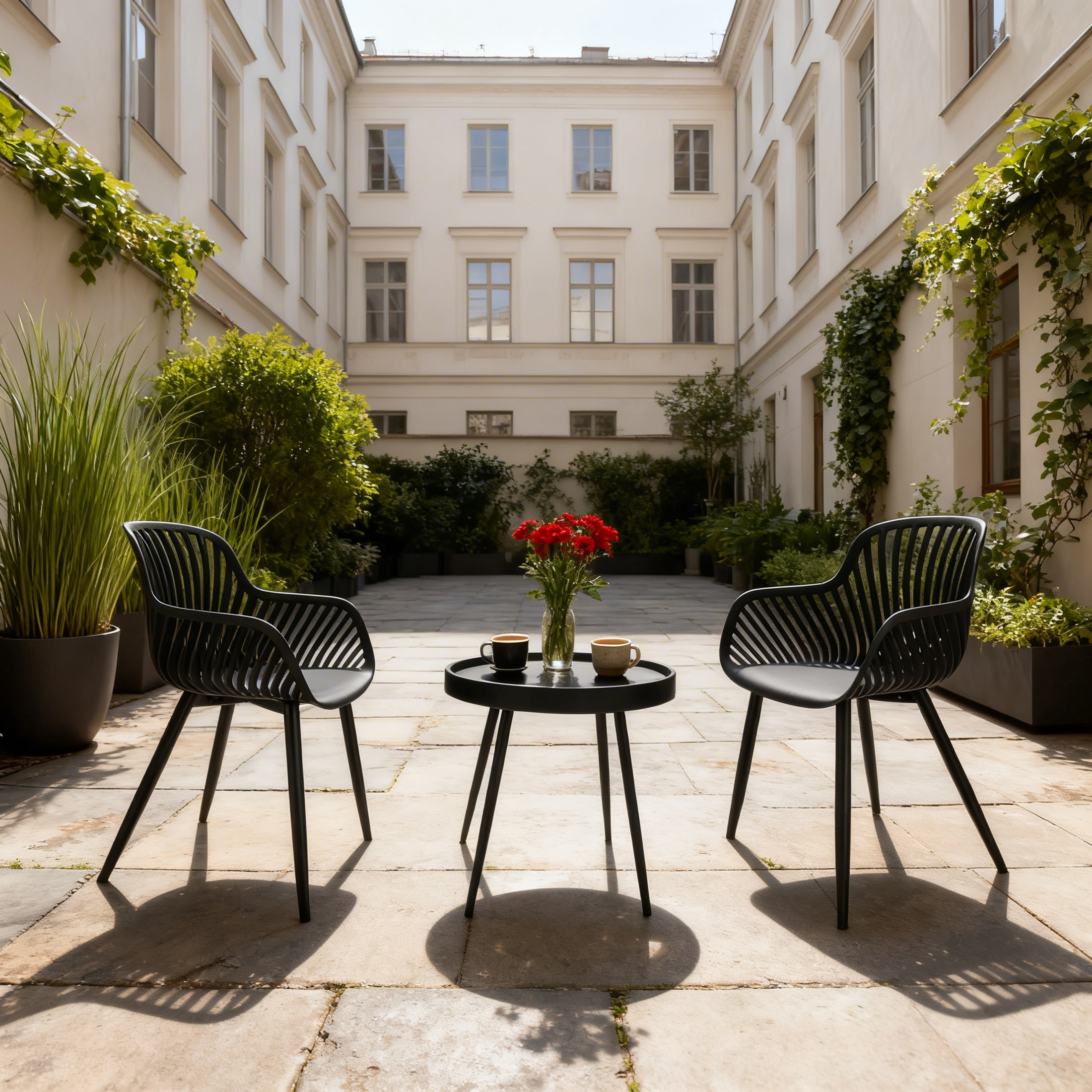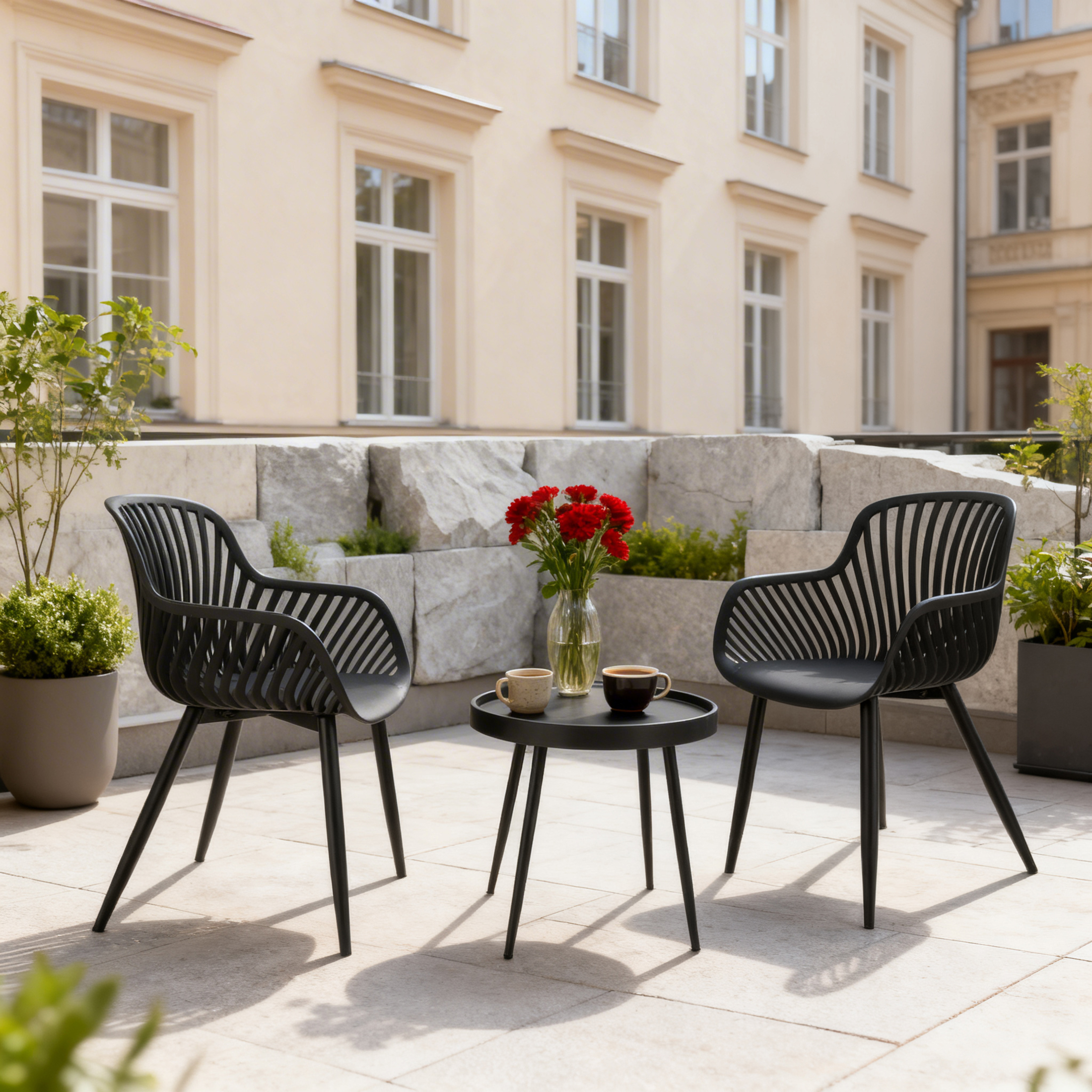 Stylowy zestaw ogrodowy, który łączy nowoczesny design, wygodę i trwałość. Doskonale sprawdzi się na balkonie, tarasie, patio, w ogrodzie czy w strefie wypoczynkowej. Zestaw został zaprojektowany z myślą o wygodzie i estetyce. Krzesła mają ergonomiczny kształt, ażurowe oparcie i wygodne podłokietniki, dzięki czemu zapewniają komfort podczas codziennego użytkowania. Stolik dołączony do kompletu jest lekki, stabilny i praktyczny - idealny na kawę, przekąski lub dekoracje.